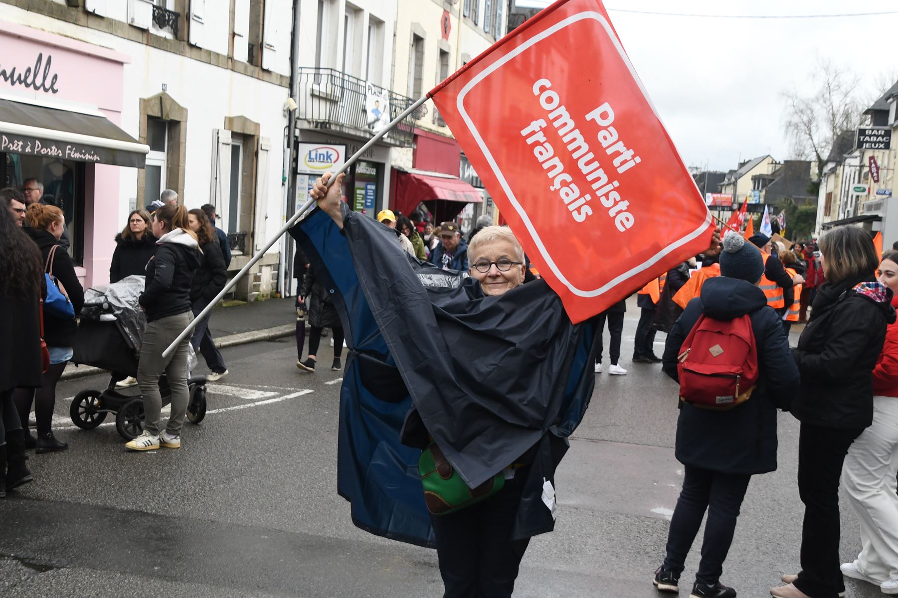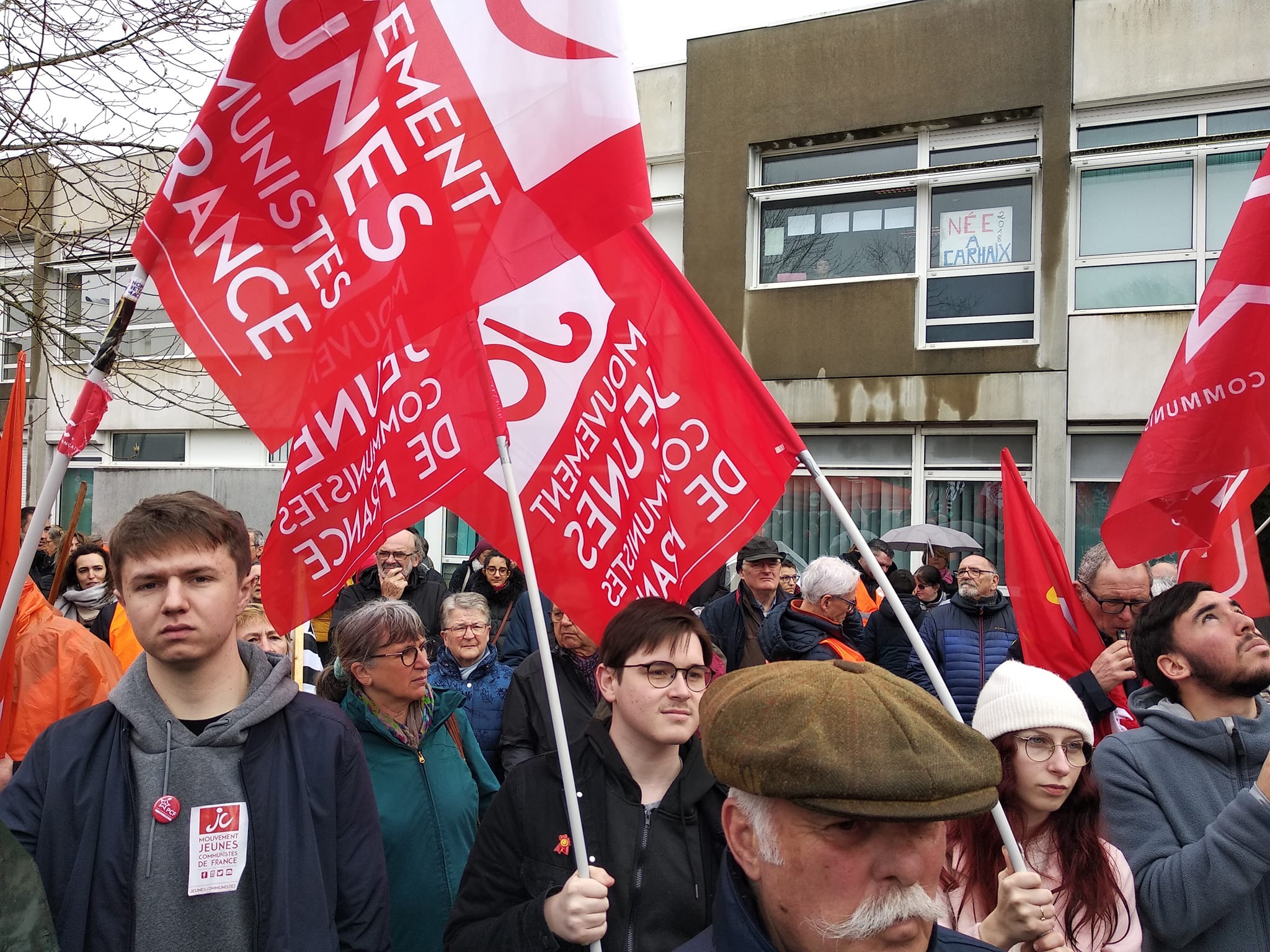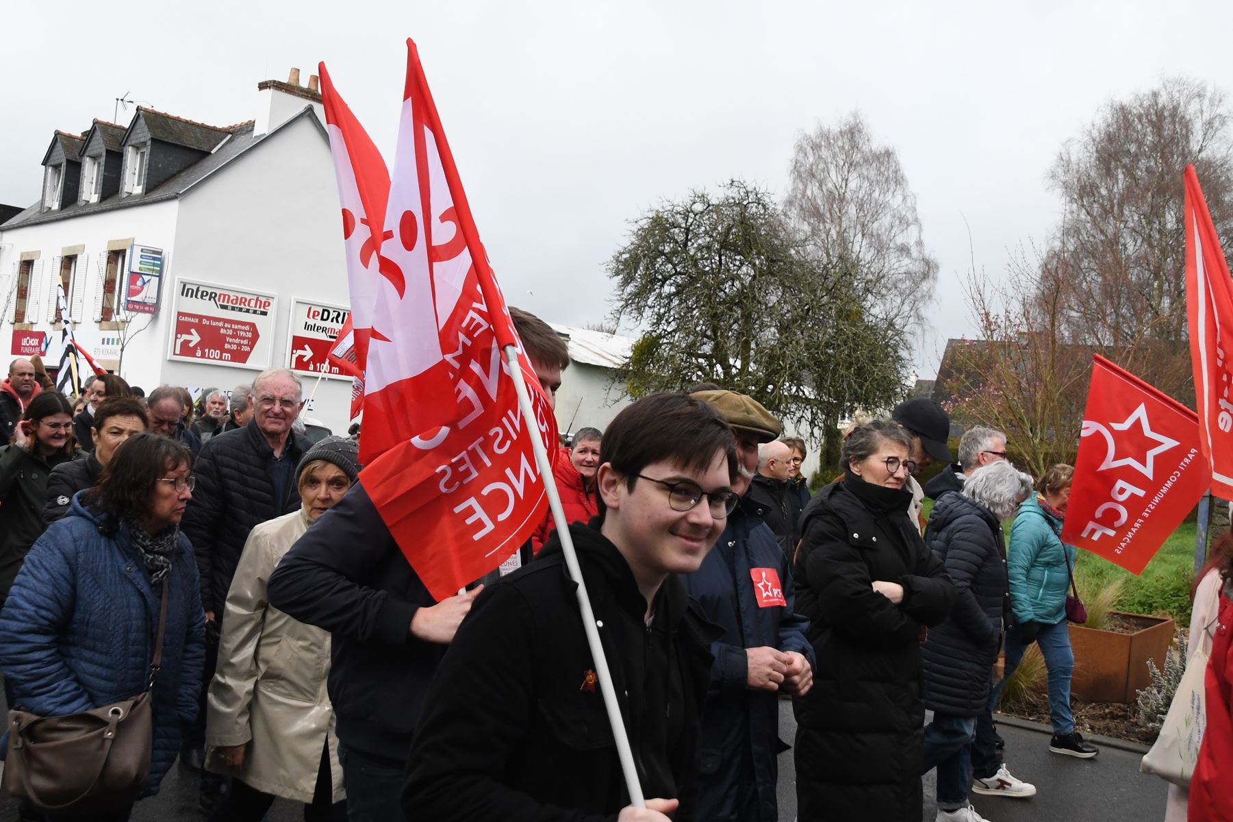 Énorme mobilisation à Carhaix ce 18 mars 2023 pour la défense de la maternité de Carhaix: 6000 manifestants, dont de nombreux communistes et jeunes communistes.