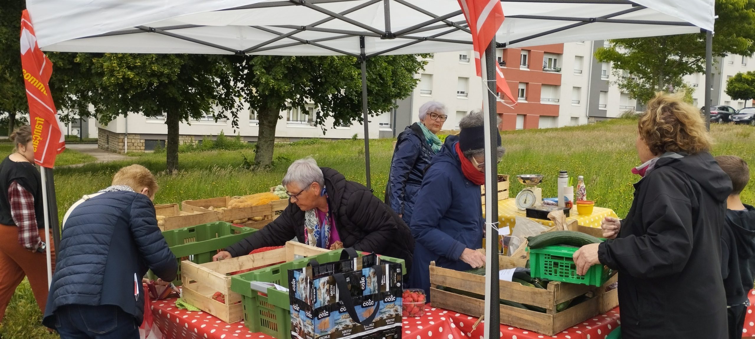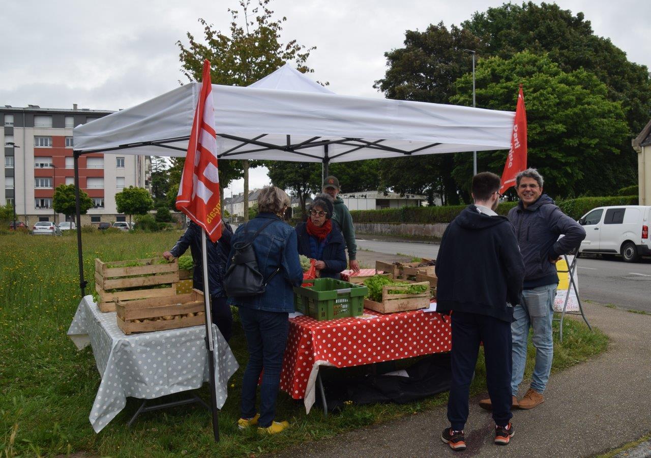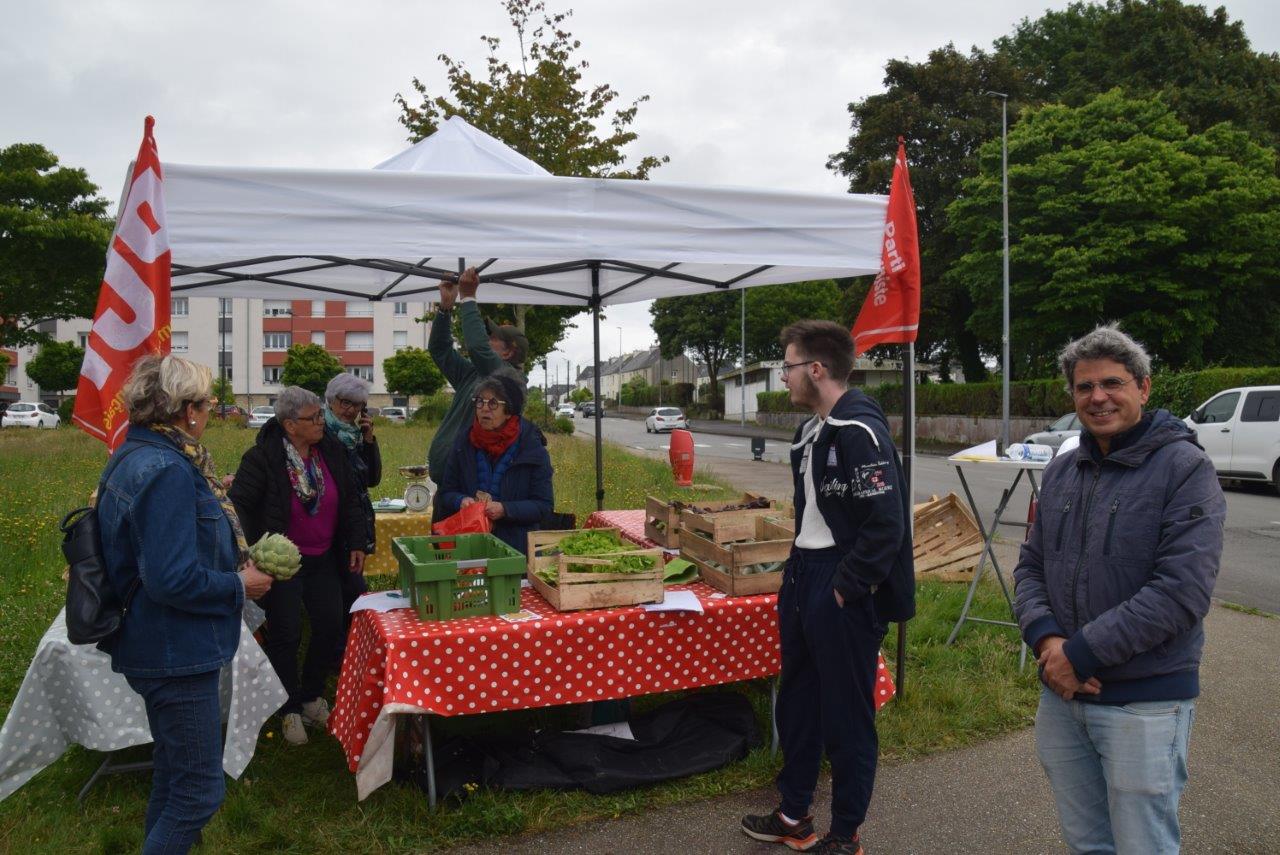 Succès de notre vente solidaire de fruits et légumes à Pors ar Bayec dans le quartier de la Madeleine à Morlaix ce samedi 7 juin 2025 au matin.