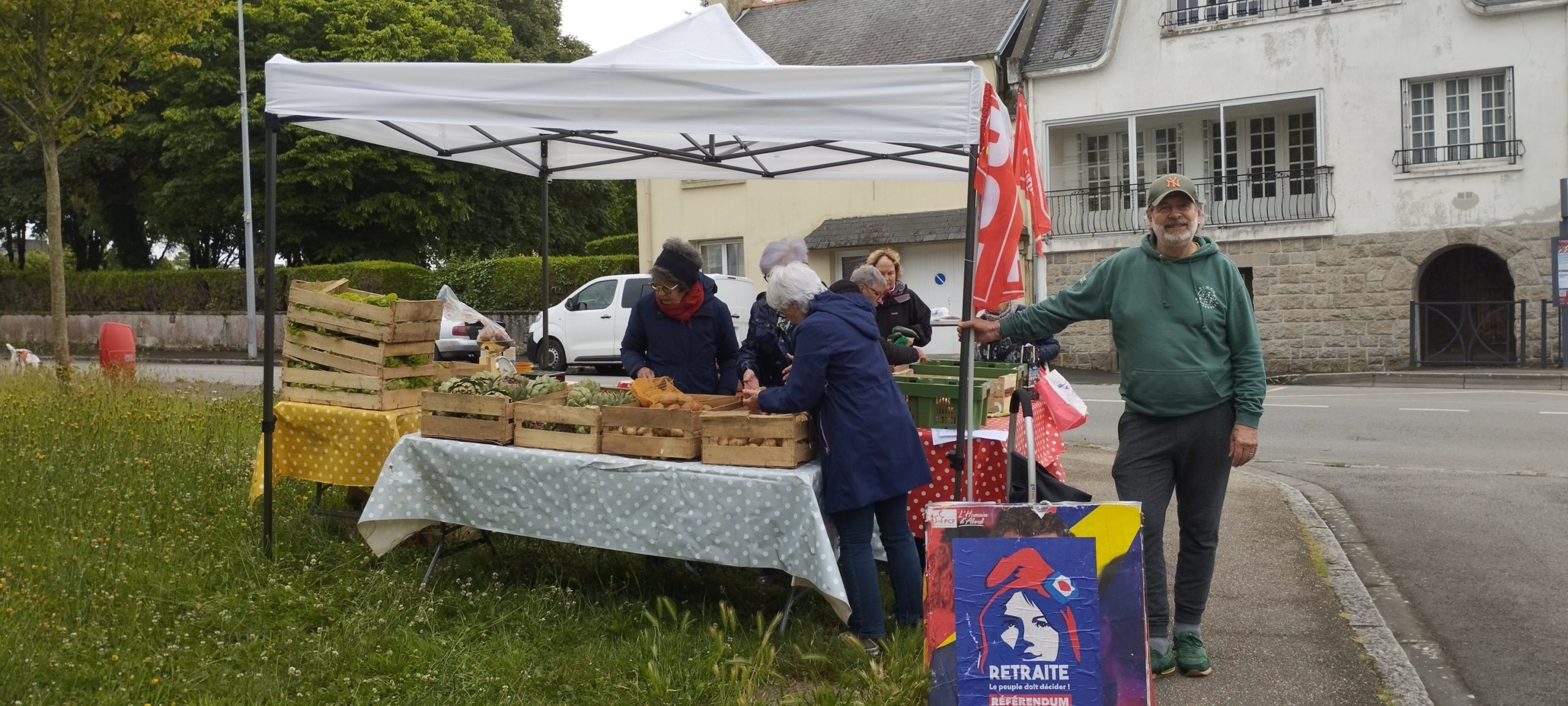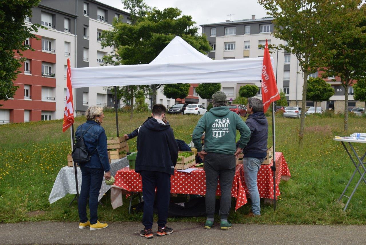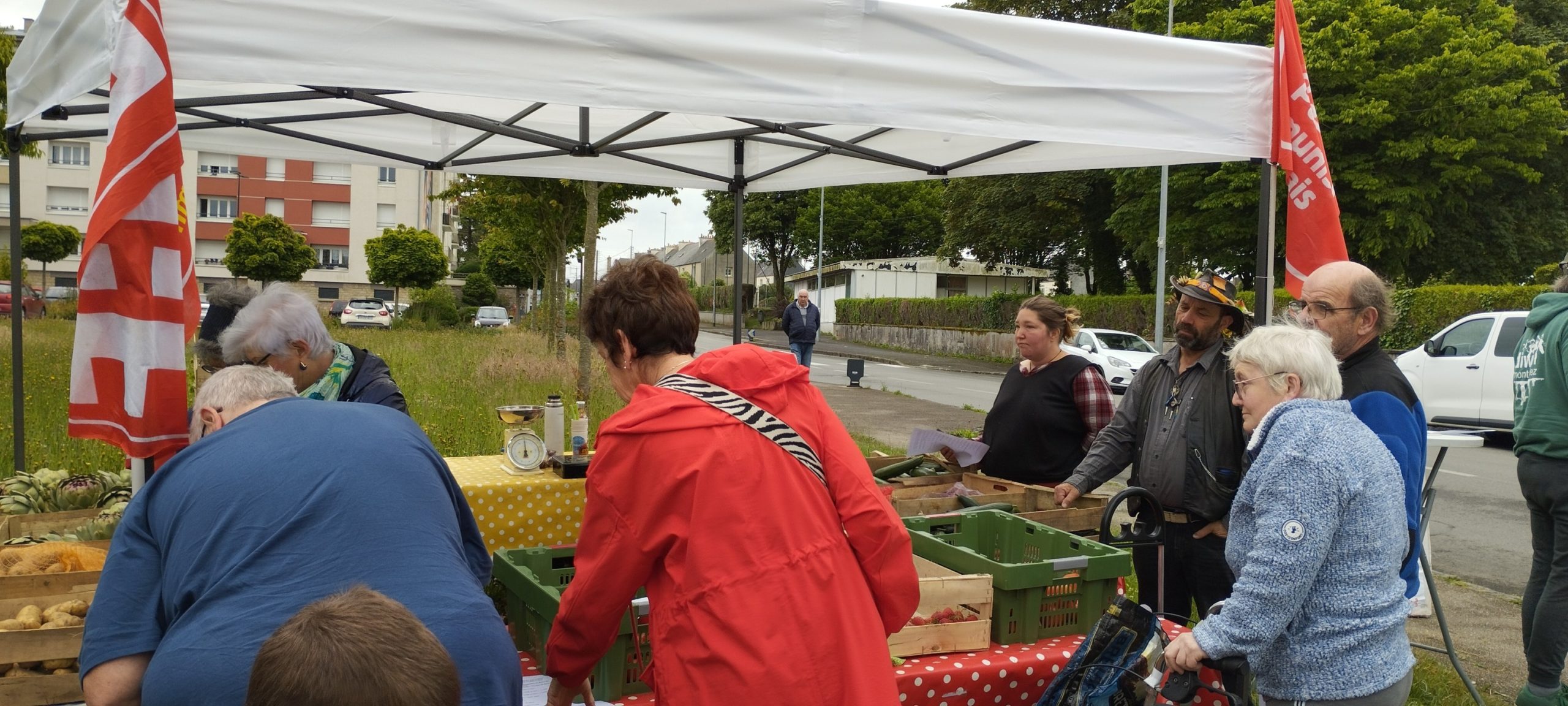 Succès de notre vente solidaire de fruits et légumes à Pors ar Bayec dans le quartier de la Madeleine à Morlaix ce samedi 7 juin 2025 au matin.