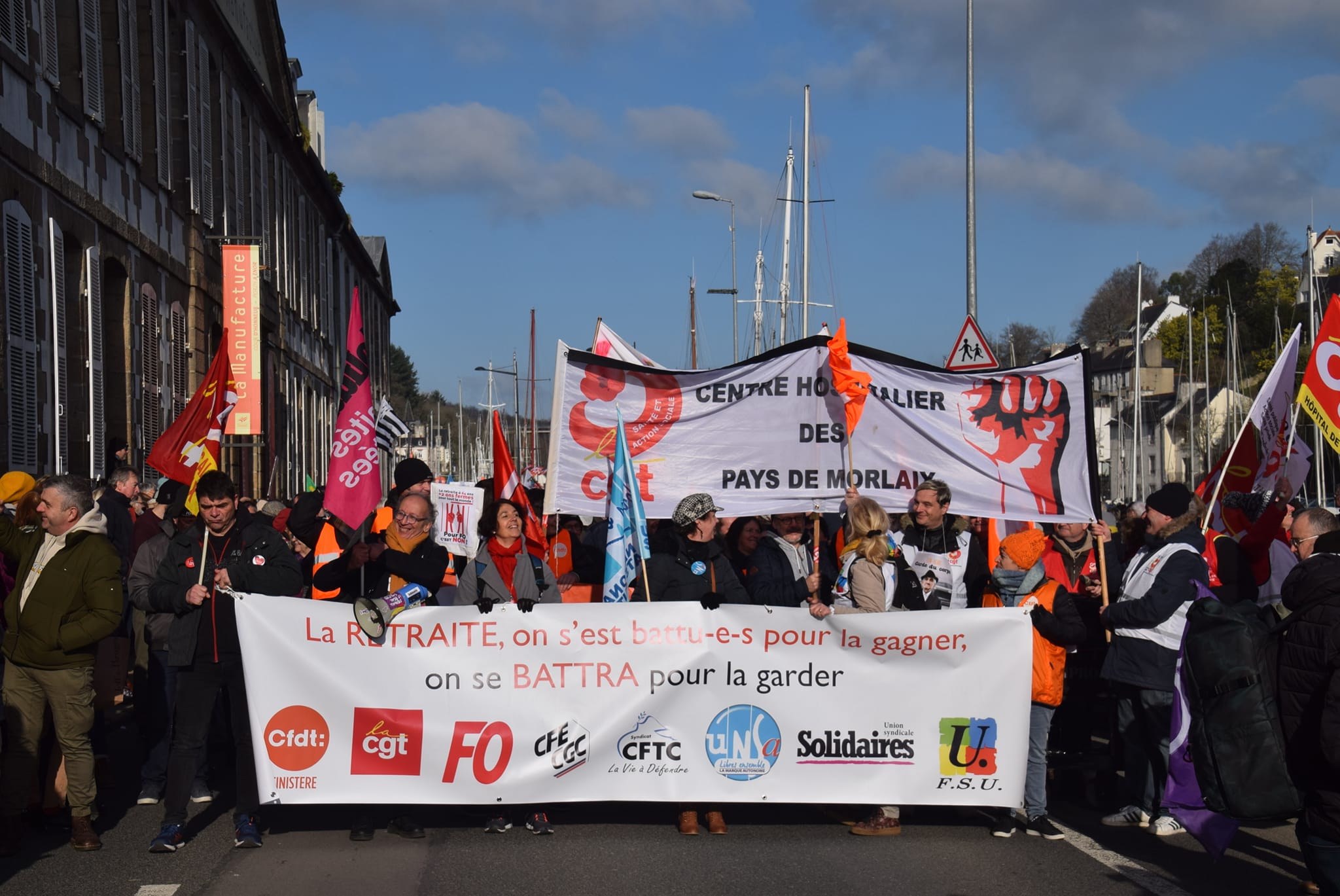 7 février: entre 8000 et 10 000 manifestants à Morlaix contre la réforme des retraites Macron