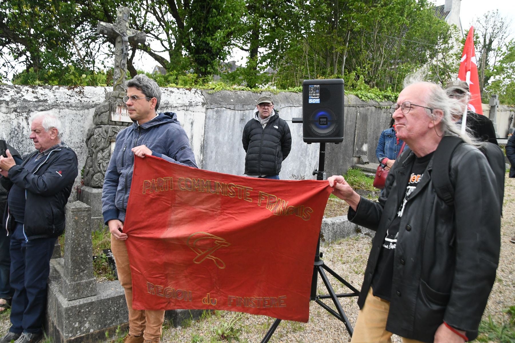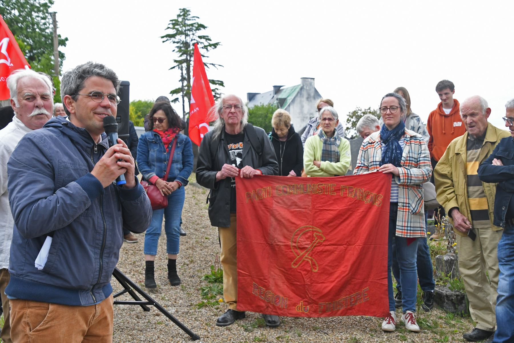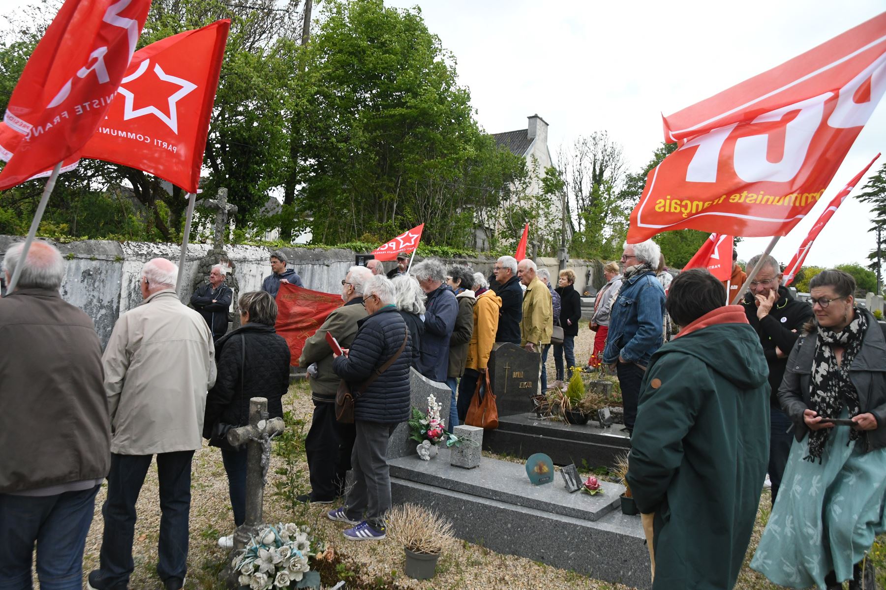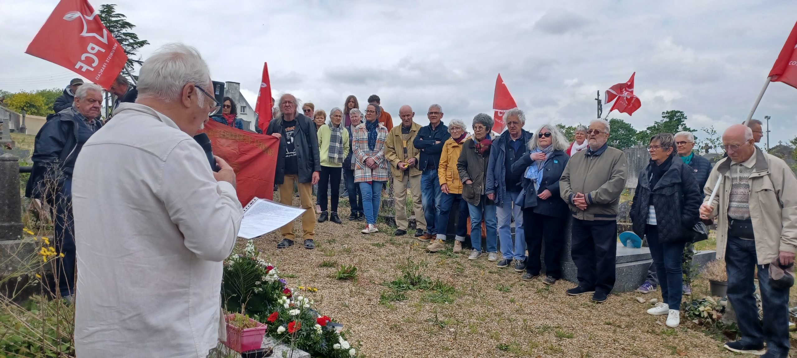 Hommage à notre camarade résistant et militant communiste Fernand Jacq, fusillé en décembre 1941 après avoir été interné à Chateaubriant, sur sa tombe au cimetière de Huelgoat. Un moment très poignant avec un discours de Pierre-Yves Thomas, le secrétaire de section du PCF Carhaix-Huelgoat, retraçant la vie de Fernand Jacq, le médecin des pauvres bretonnant de Huelgoat. Photos de notre camarade Daniel Laporte ce 8 mai au cimetière de Huelgoat, une cérémonie en présence de la famille de Fernand Jacq, d’une quarantaine de camarades et de l’ancien maire communiste de Huelgoat Robert Cleuziou.