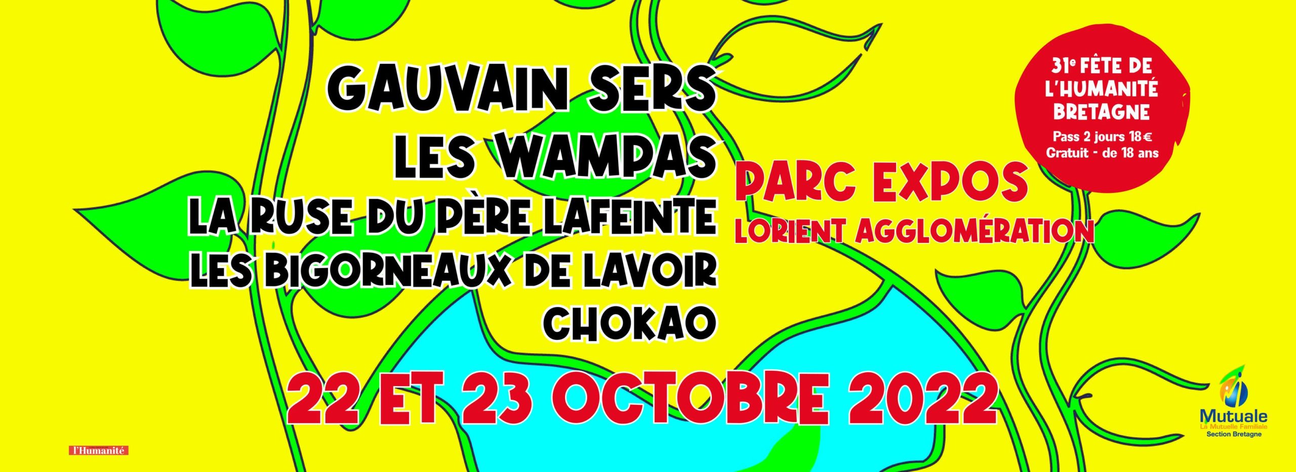 C’est le retour de la fête de l’Humanité Bretagne au parc des Expositions du pays de Lorient à Lanester, cette fois-ci avancée au mois d’octobre, plutôt que fin-novembre/ début décembre les années précédentes, les samedi 22 octobre et dimanche 23 octobre, en raison de la disponibilité du parc des Expositions.