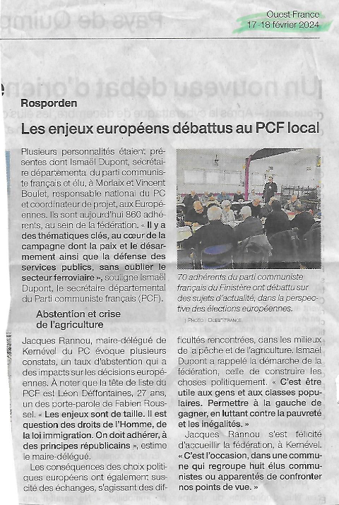 Vous aussi, aidez à porter haut les idées communistes aux élections européennes et à faire rentrer au Parlement Européen des députés européens communistes et partageant un même projet pour l’Europe, rejoignez le comité de soutien finistérien à la liste de rassemblement à gauche conduite par Léon Deffontaines et soutenue par le PCF.