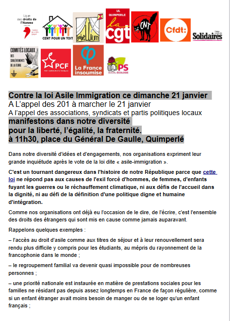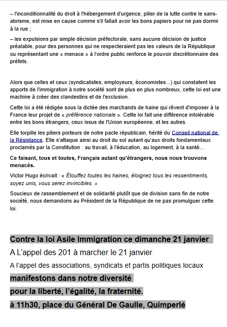 Demain, nous serons présents Place de la Liberté à 11 heure, aux côtés des organisations syndicales, afin de marcher pour la liberté, l’égalité, la fraternité et demander au Président de la République que cette loi ne soit pas promulguée.