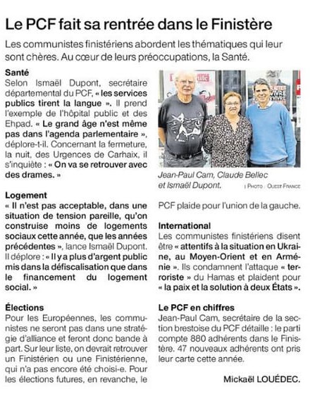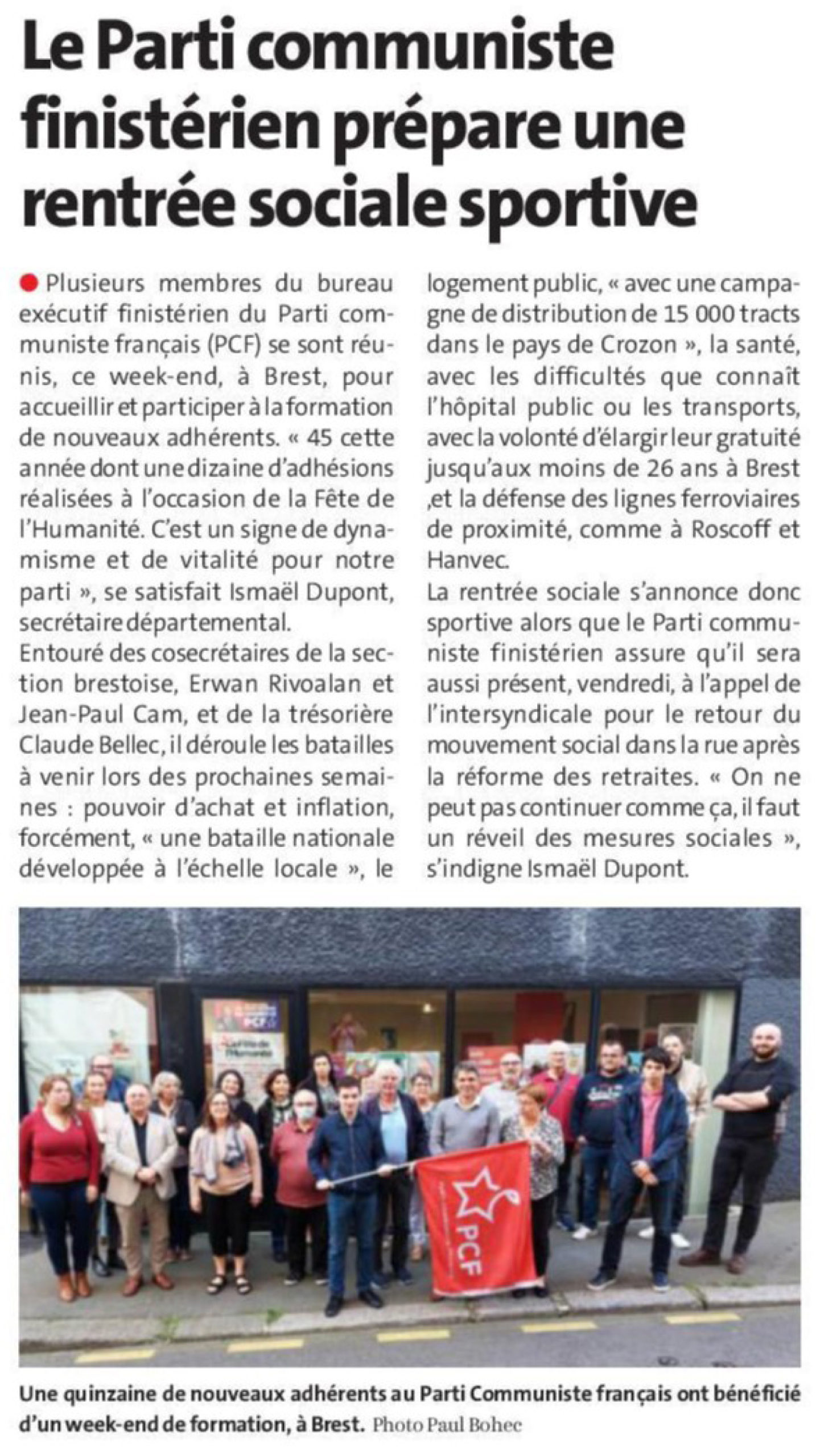 Le PCF Finistère remercie les 65 élus et dirigeants politiques de gauche finistériens qui ont, en deux jours seulement, signé cet appel.