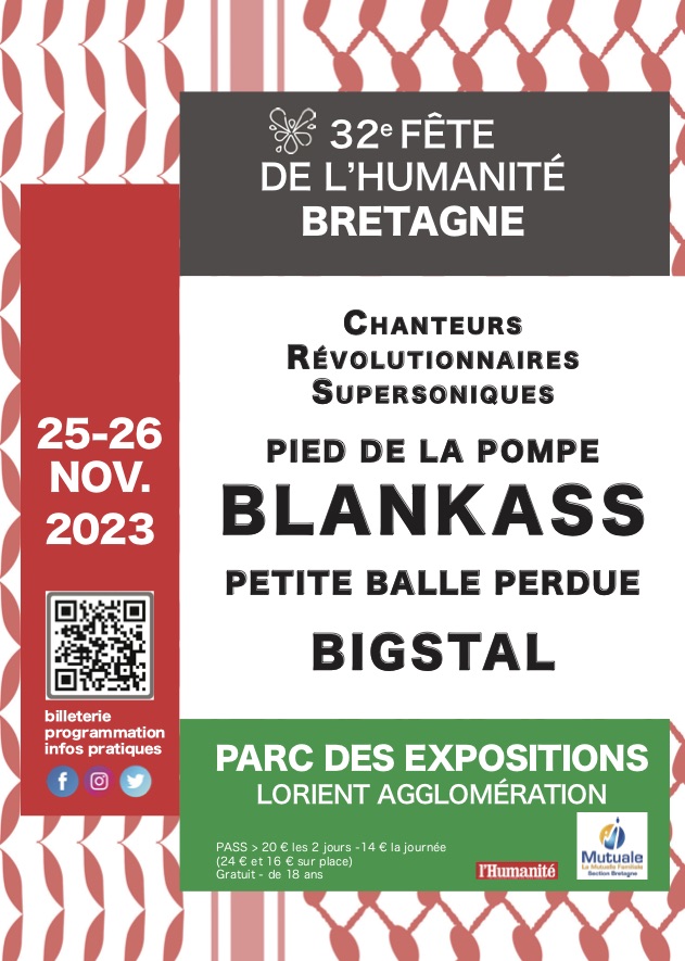 samedi 25 novembre et dimanche 26 novembre: fête de l’Humanité Bretagne à Lanester (parc des expositions de Lanester)