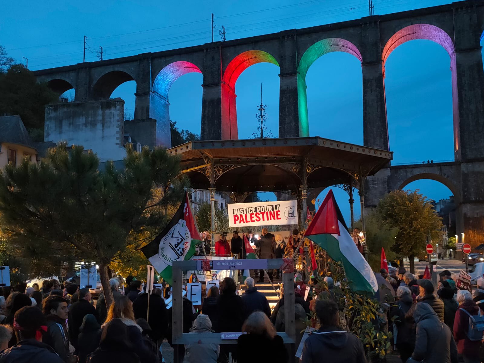 Plus de deux cent personnes à Morlaix ce samedi 18 novembre pour exiger un cessez-le-feu immédiat à Gaza ! Notre mobilisation est essentielle pour obtenir de notre gouvernement et de l’Union européenne qu’ils inversent leur politique de soutien au régime de Tel-Aviv.