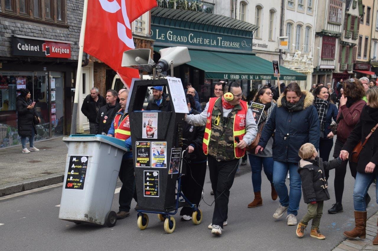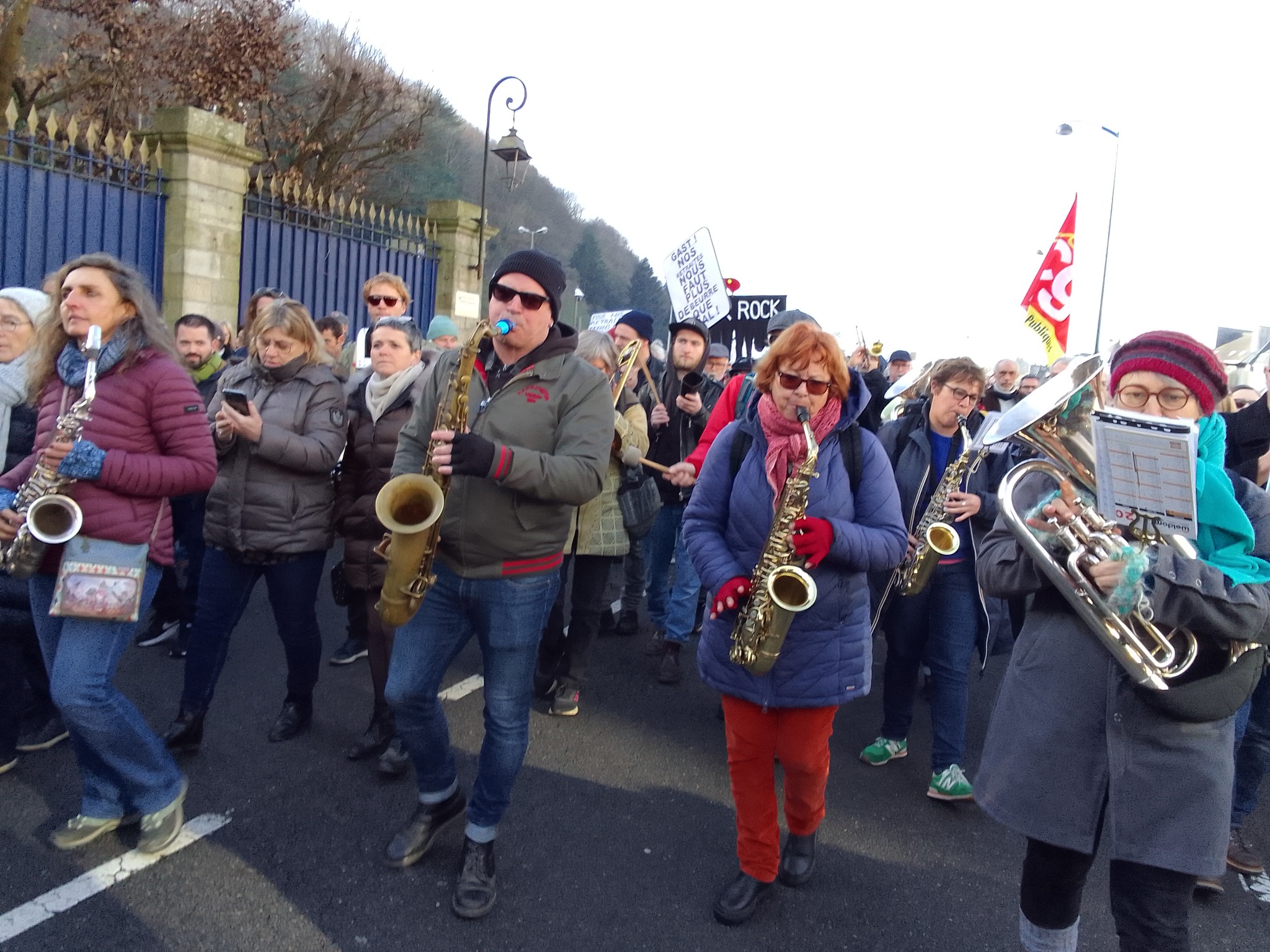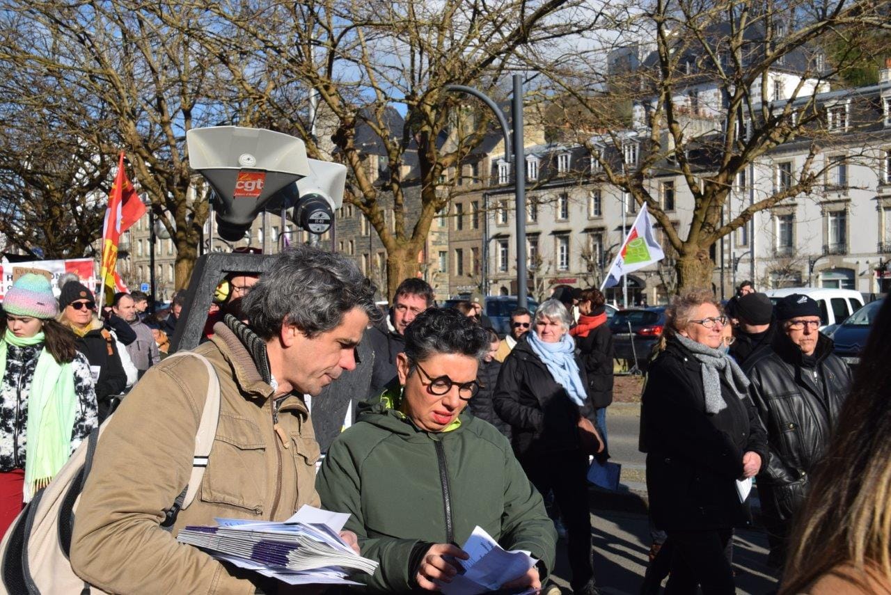 Merci aux musiciens de la Fanfare Hej Da Ru et à Dominique et Joël Corre d’accompagner bénévolement en musique notre rassemblement, notre défilé et cette mobilisation pour y mettre de la joie et du dynamisme.