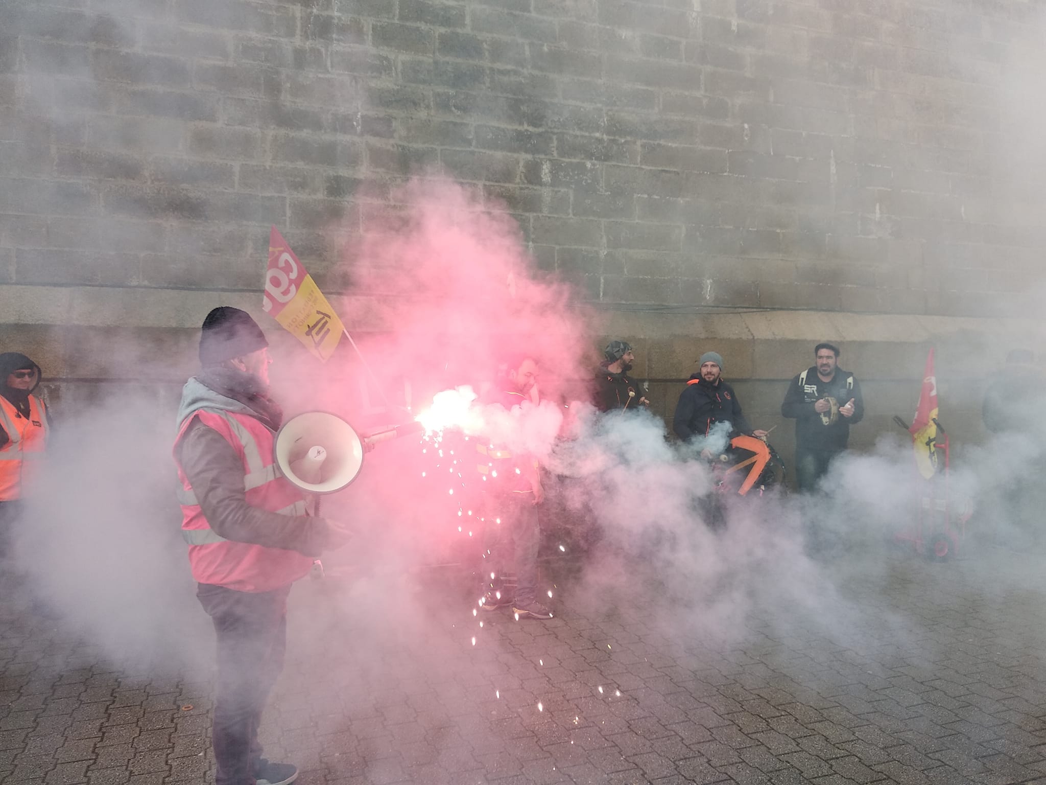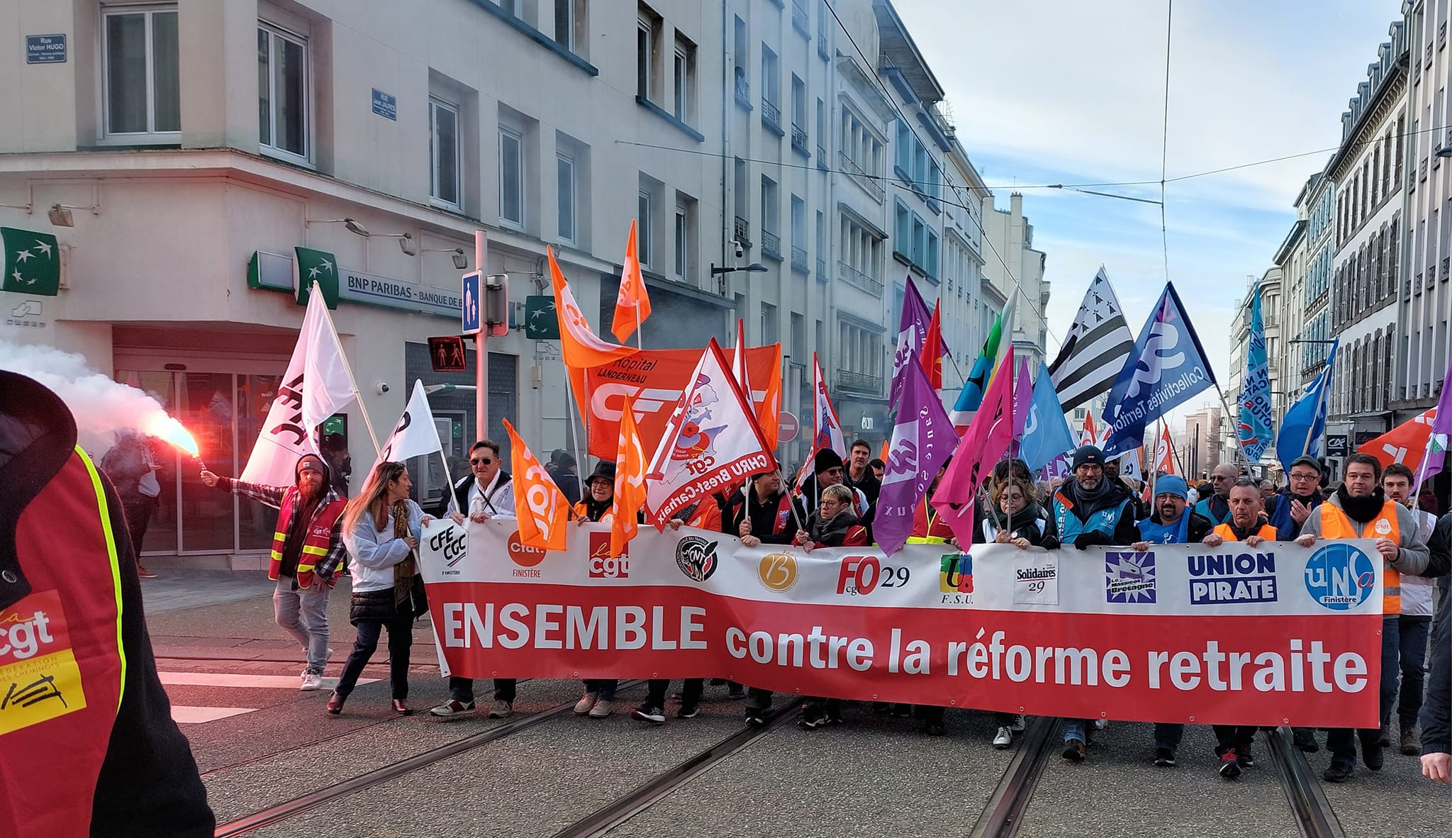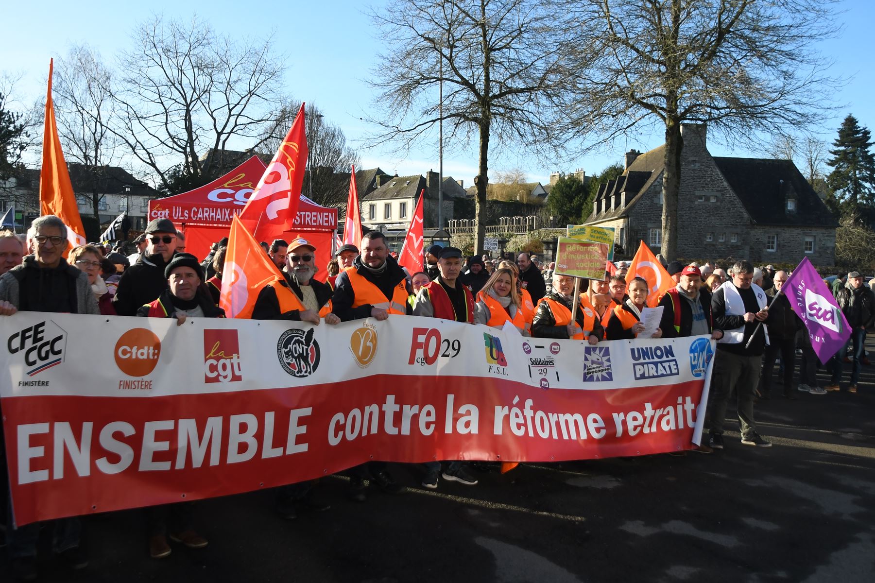 Merci aux musiciens de la Fanfare Hej Da Ru et à Dominique et Joël Corre d’accompagner bénévolement en musique notre rassemblement, notre défilé et cette mobilisation pour y mettre de la joie et du dynamisme.
