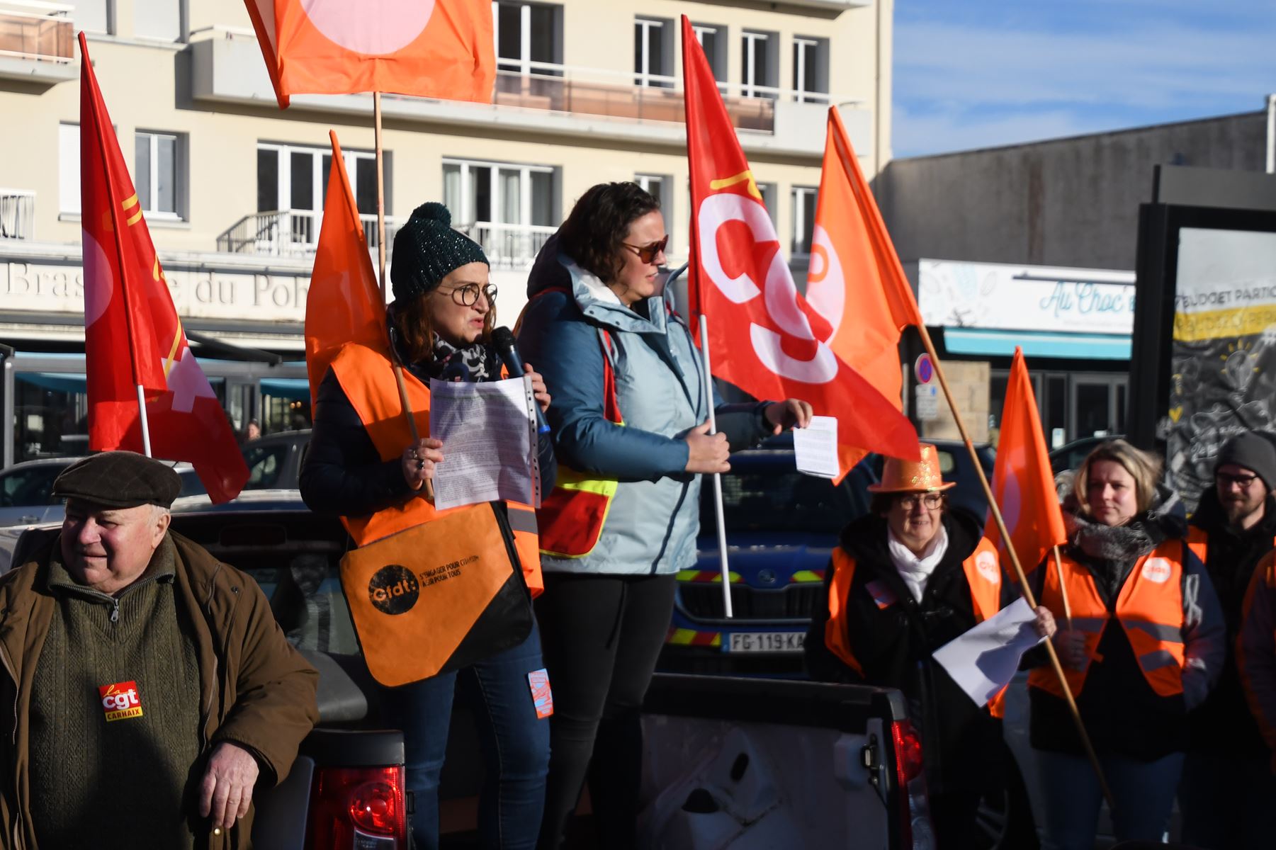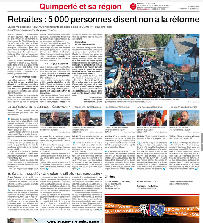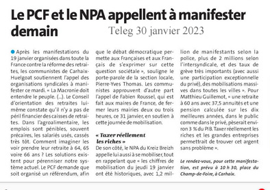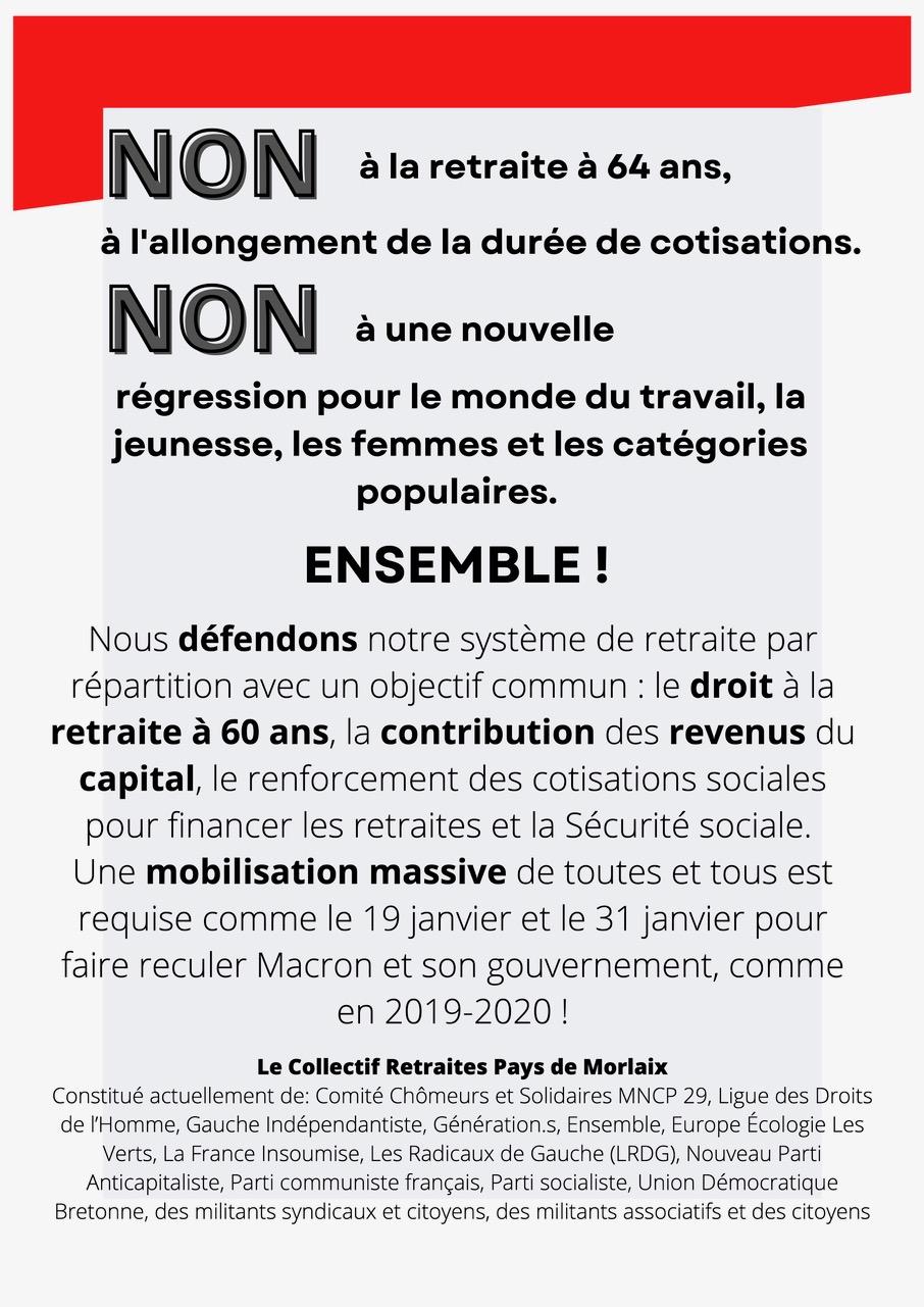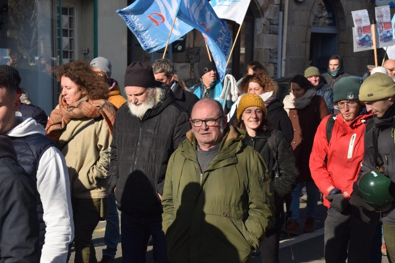 Dans un premier temps, après la prise de parole unitaire du Collectif, nous allons donner la parole à la maire de Roscoff, Odile Thubert Montagne, puis à Roger Héré, qui représentera Jean-Paul Vermot, en déplacement officiel en Allemagne pour l’anniversaire du Traité de l’Elysée à Wurselen, commune jumelée avec Morlaix et d’autres communes des environs de Morlaix , et qui le représentera en tant que vice-président Transports Mobilités de Morlaix Communauté.
