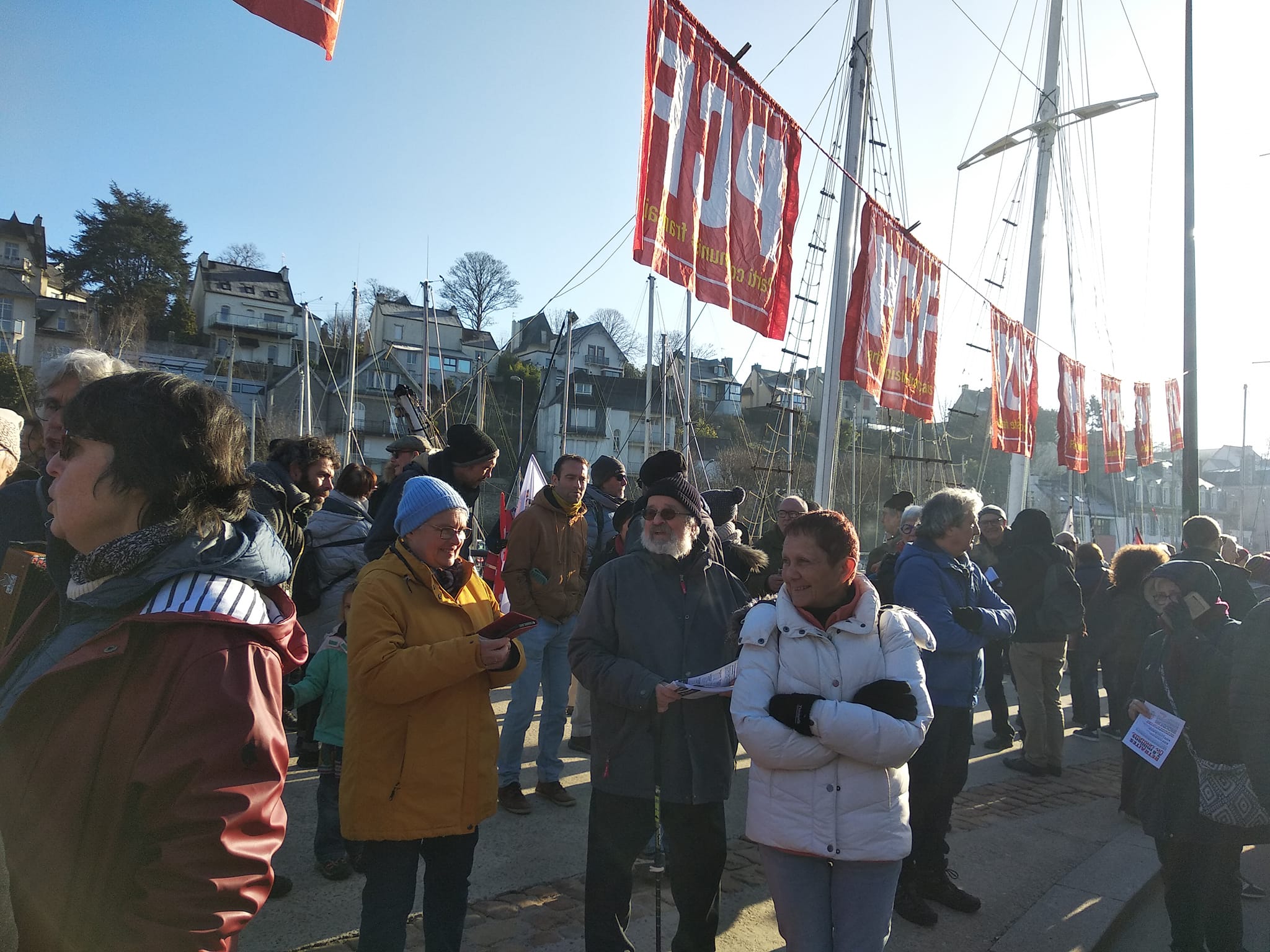 Et un très beau rassemblement organisé par le collectif pour la ligne Morlaix Roscoff suivi d’un défilé en musique (encore merci à Joël et Dominique Corre et à la fanfare Hej Da Ru qui ont rendu la marche dans Roscoff sous un grand soleil d’hiver encore plus agréable au son de la musique bretonne)