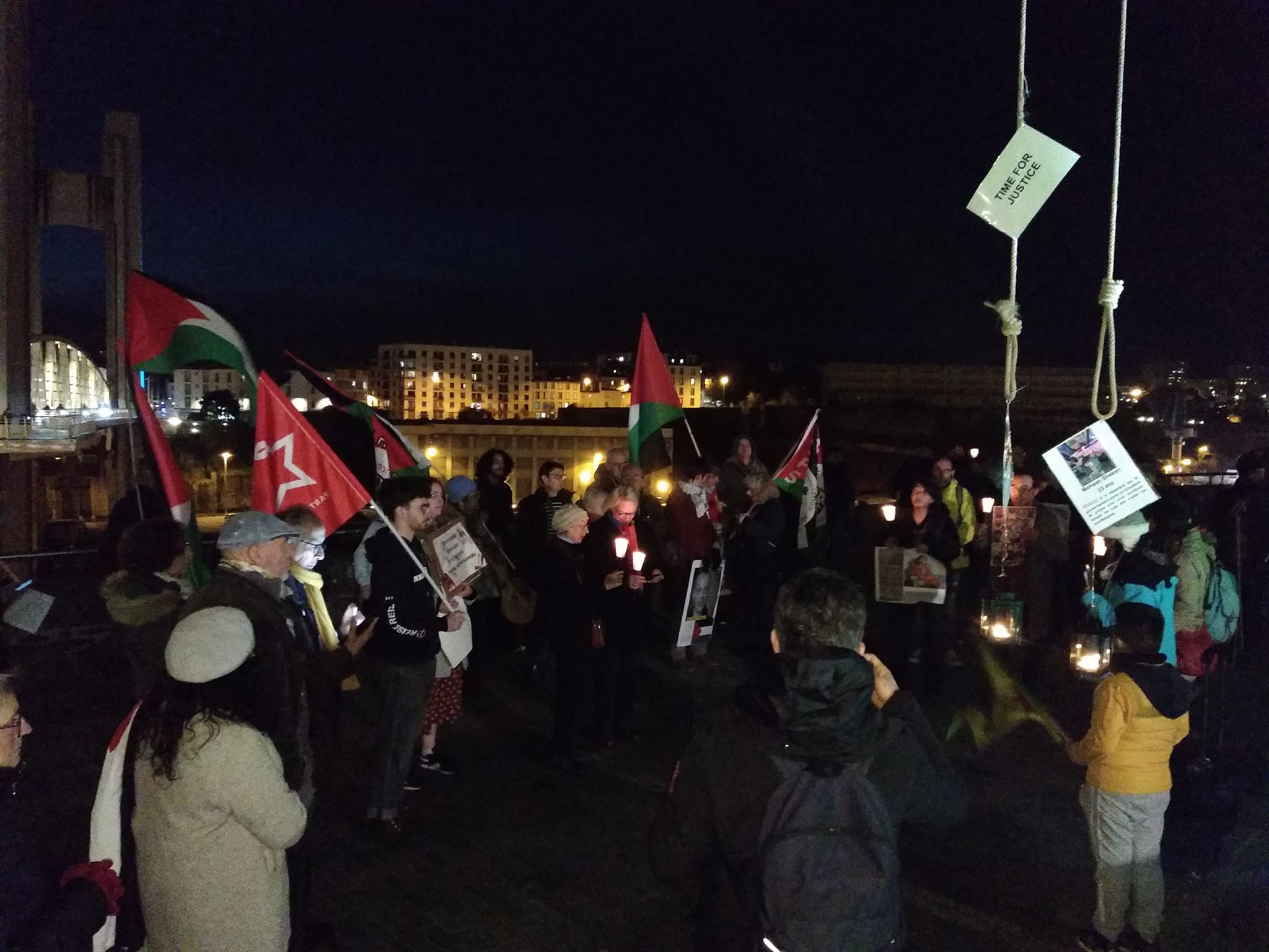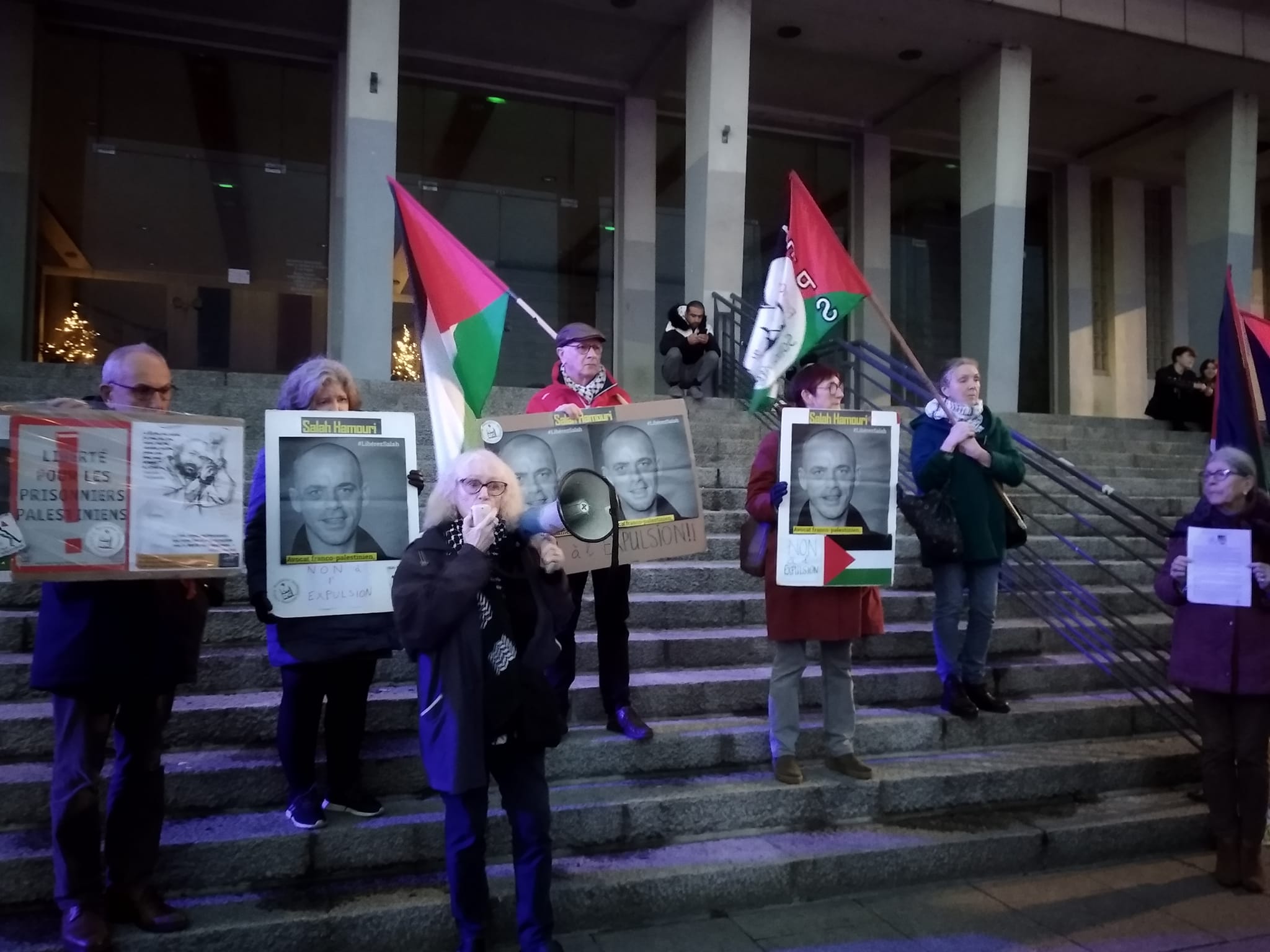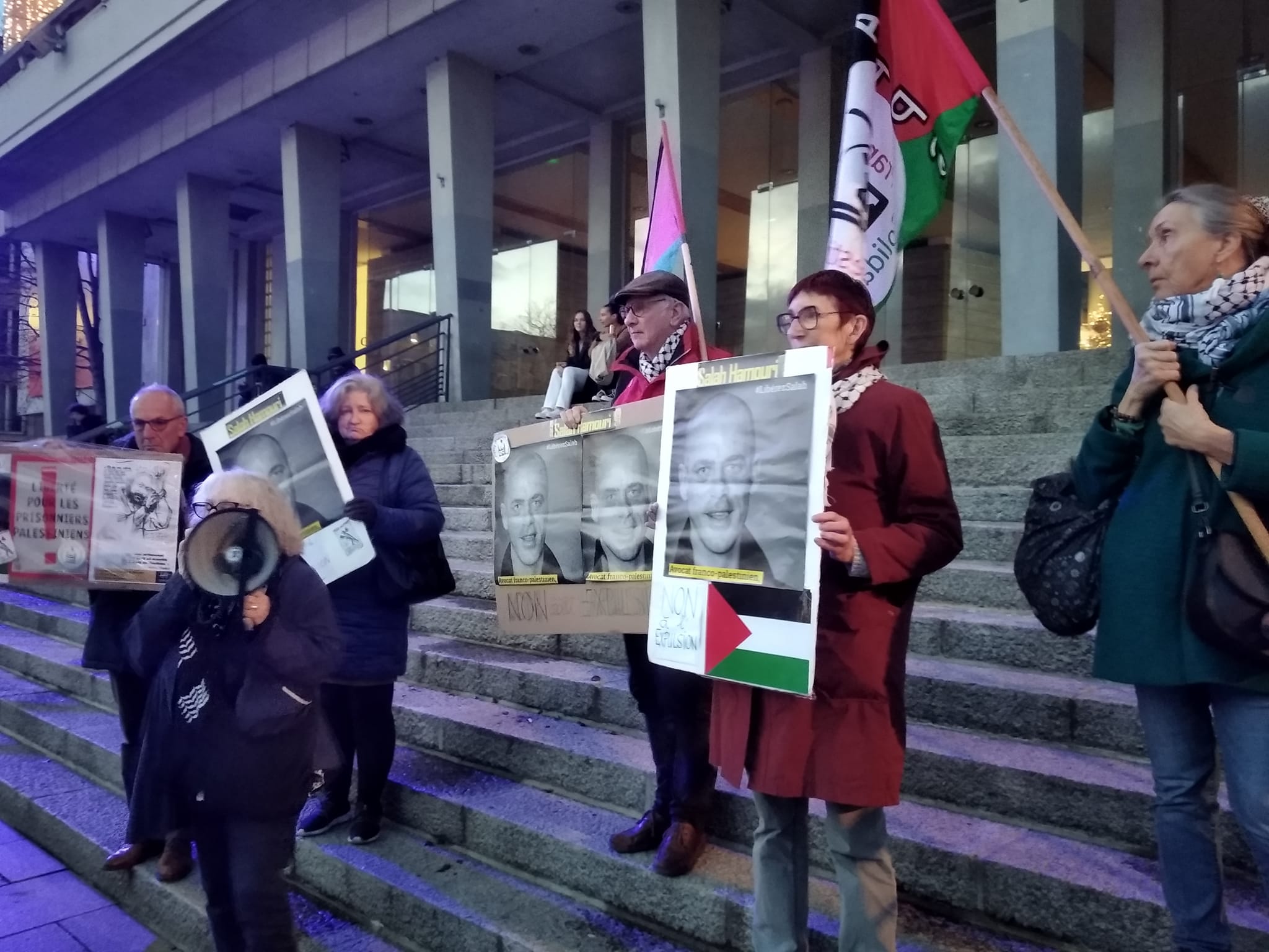 Manifestation pour dénoncer l’expulsion de Salah Hamouri, enfermé sans procès et arbitrairement pendant des mois par les Israéliens, de son pays et de sa ville natale, Jérusalem, samedi, sans que la France ne protège les droits de son concitoyen binational. C’était ce soir à Brest avec l’AFPS, 3 camarades du PCF étaient présents aussi, et des camarades de l’AFPS Morlaix. Claude Leostic a expliqué la situation de Salah et contextualisé son combat pour les droits humains et des Palestiniens, lui qui est déjà venu témoigner plusieurs fois à Brest et dans le Finistère. Nous étions une quarantaine place de la liberté ce 20 décembre à l’initiative de l’AFPS pour dénoncer l’expulsion de Salah Hamouri et l’épuration ethnique qui se poursuit a Jérusalem.