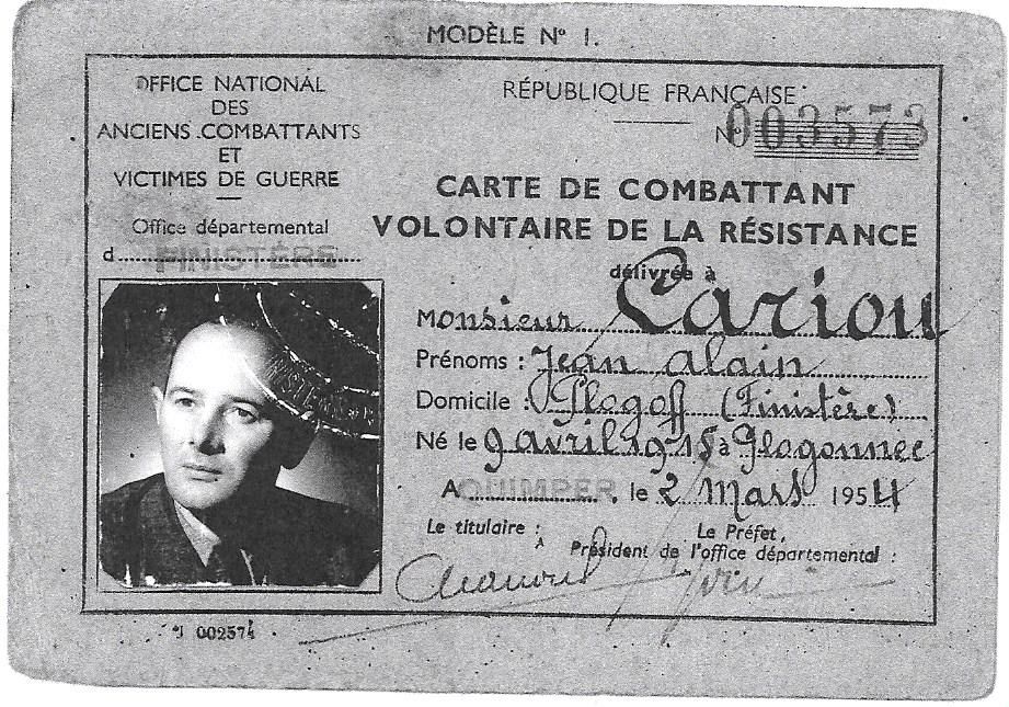 Alain Cariou est le père de nos camarades Jean-Claude Cariou, militant du PCF et de l’ANACR, et Alain Cariou de Plougonvelin, élu municipal pendant 3 mandats (adjoint au maire de 2008 à 2014) et membre du PCF depuis 54 ans.