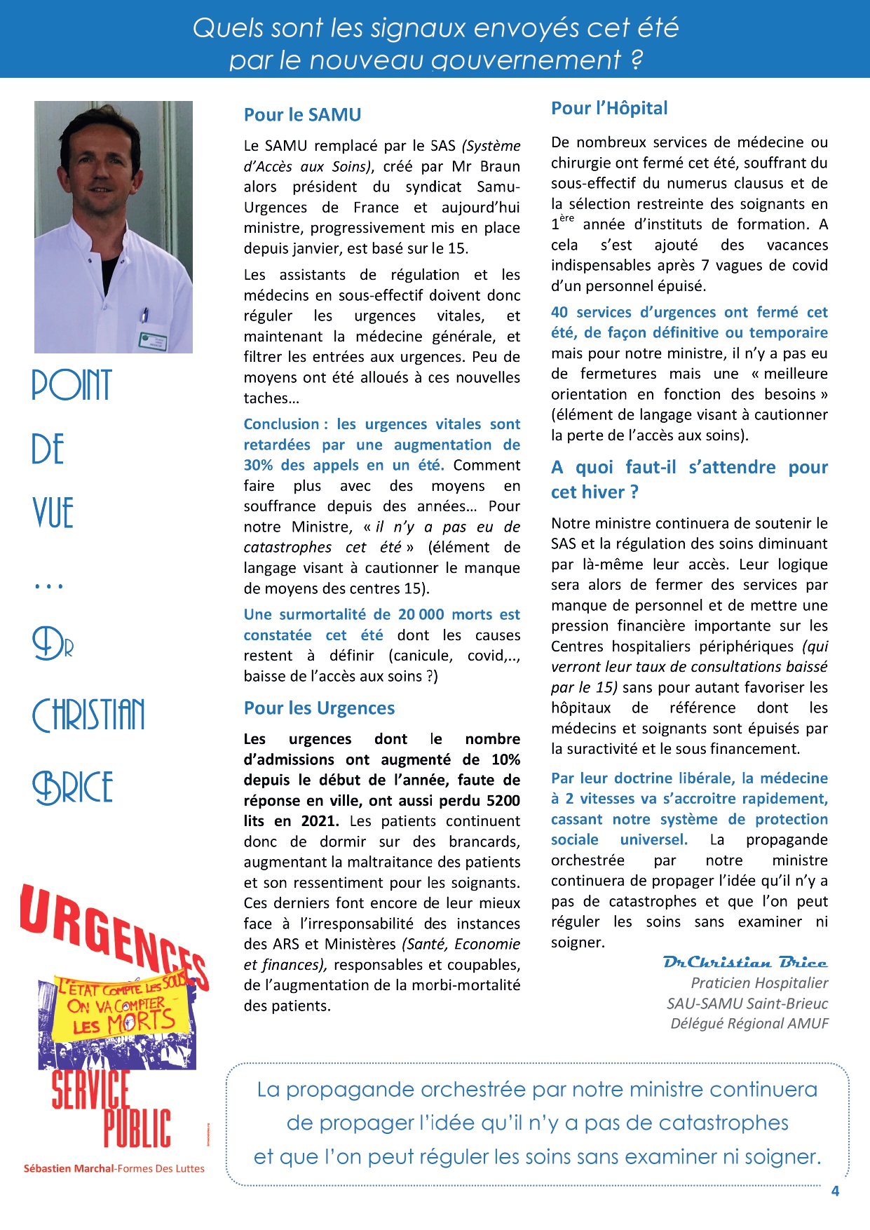 services rendus à la population, précarisation et mal-être du personnel, perte du sens du travail, impossibilité d’assurer un travail de qualité faute de moyens humains et techniques.