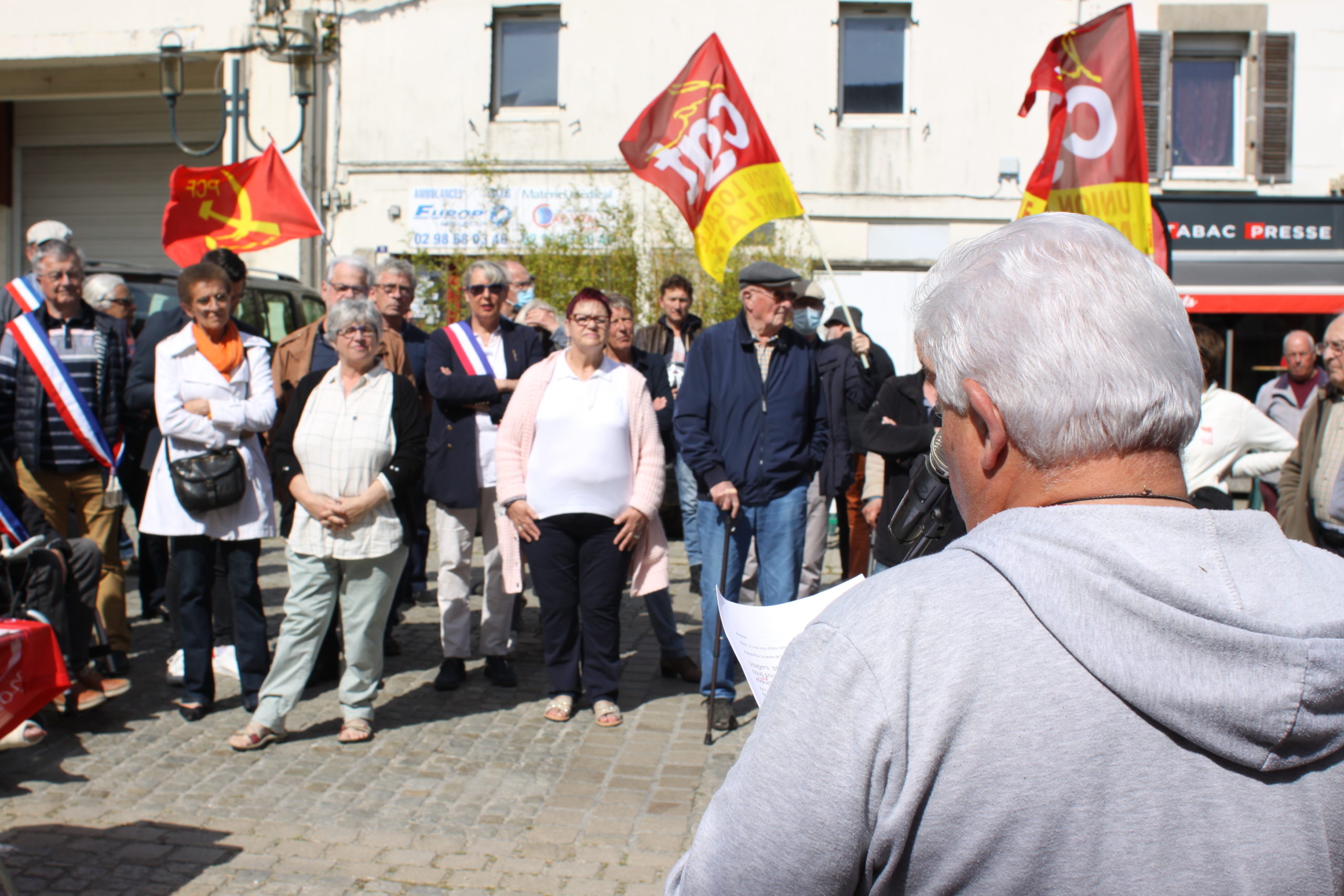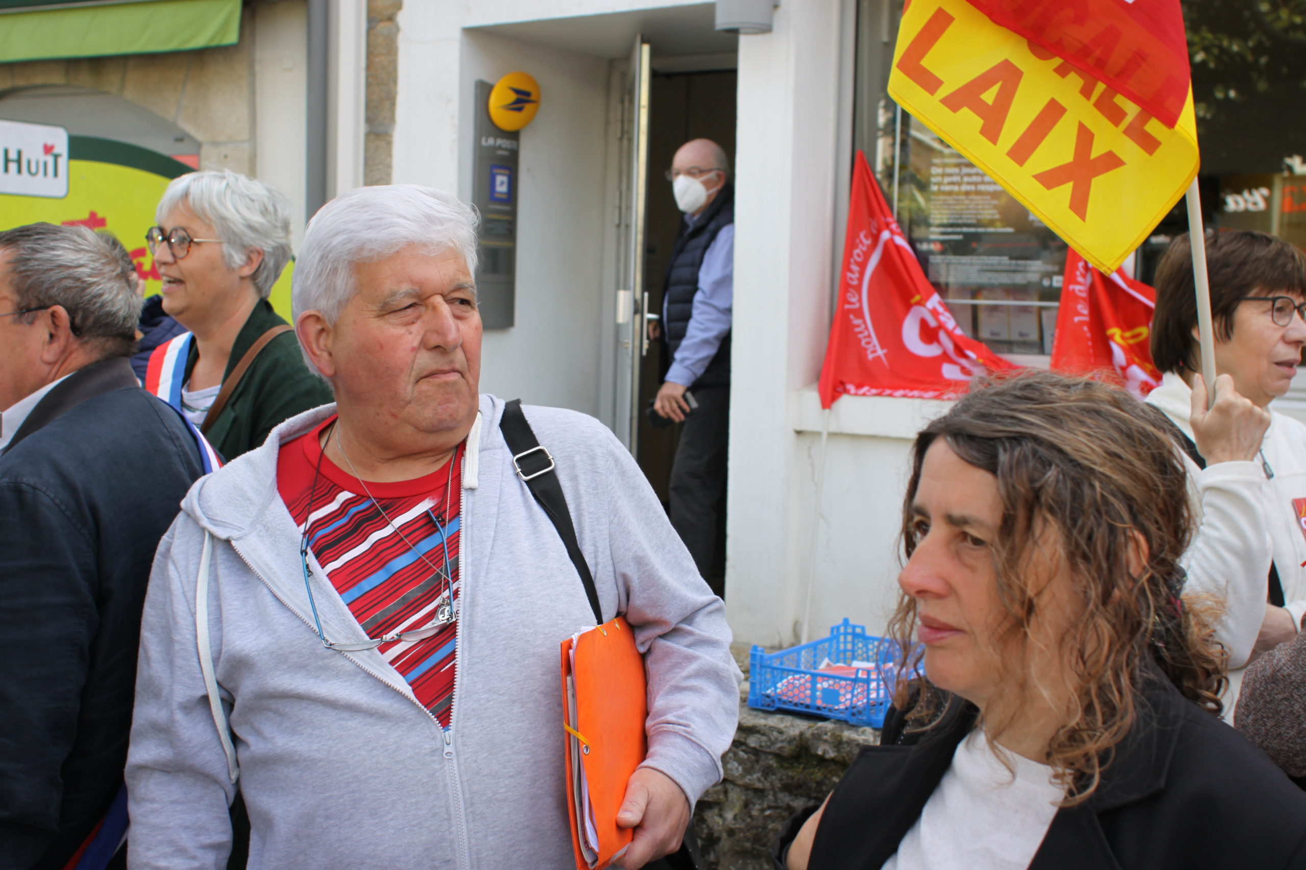 Intervention au rassemblement organisé devant la Poste de Lanmeur :