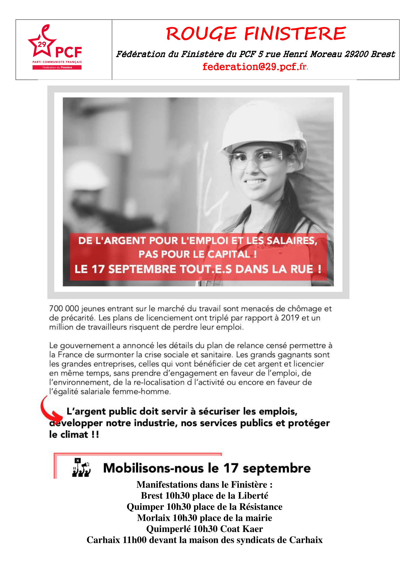 Le 27 septembre, votez pour la liste « En Finistère, la Gauche ».