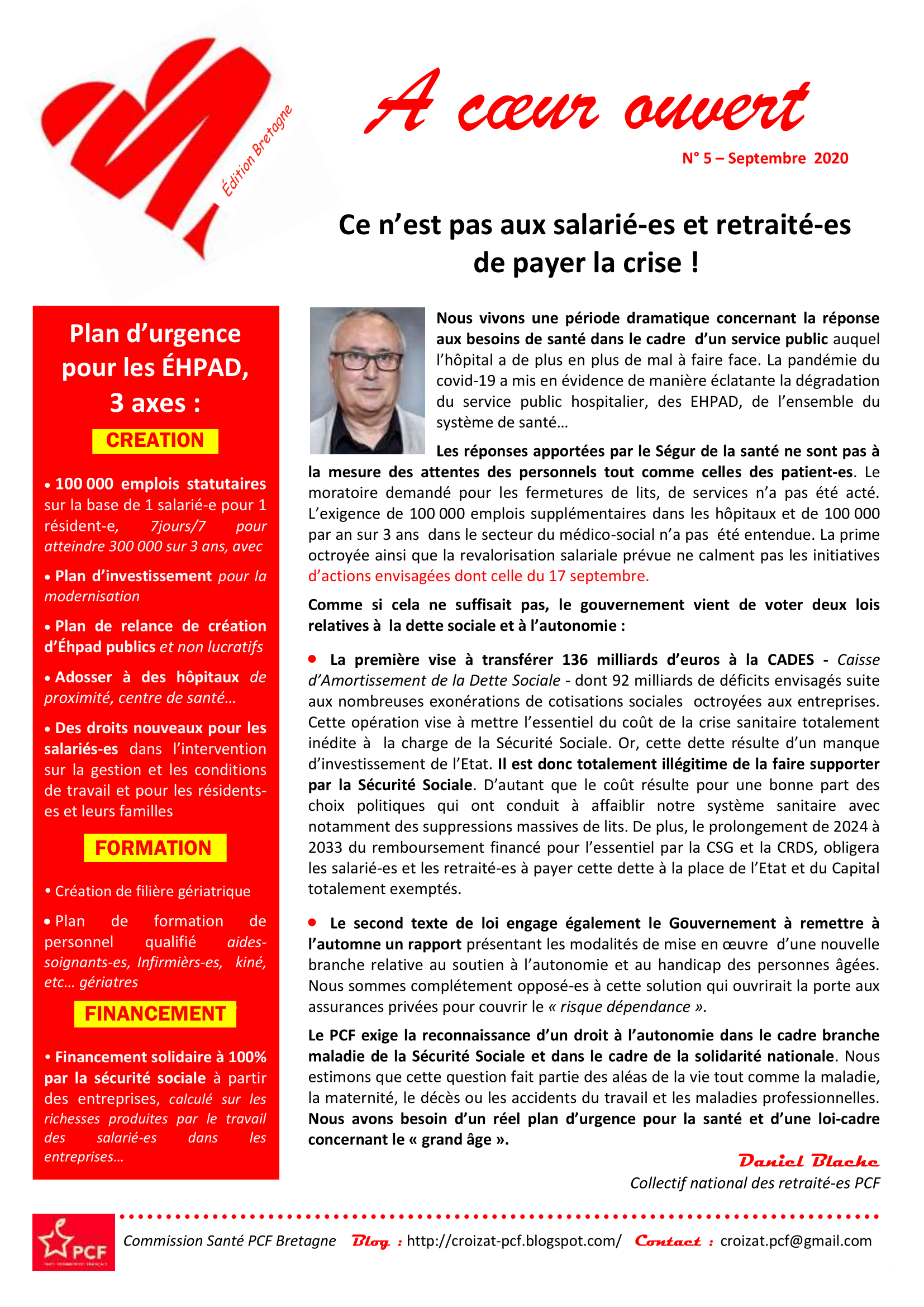 Il faut un plan d’urgence pour les EHPAD et les hôpitaux, où il faut mettre fin à la tarification à l’activité et à la main-mise croissante du privé lucratif.