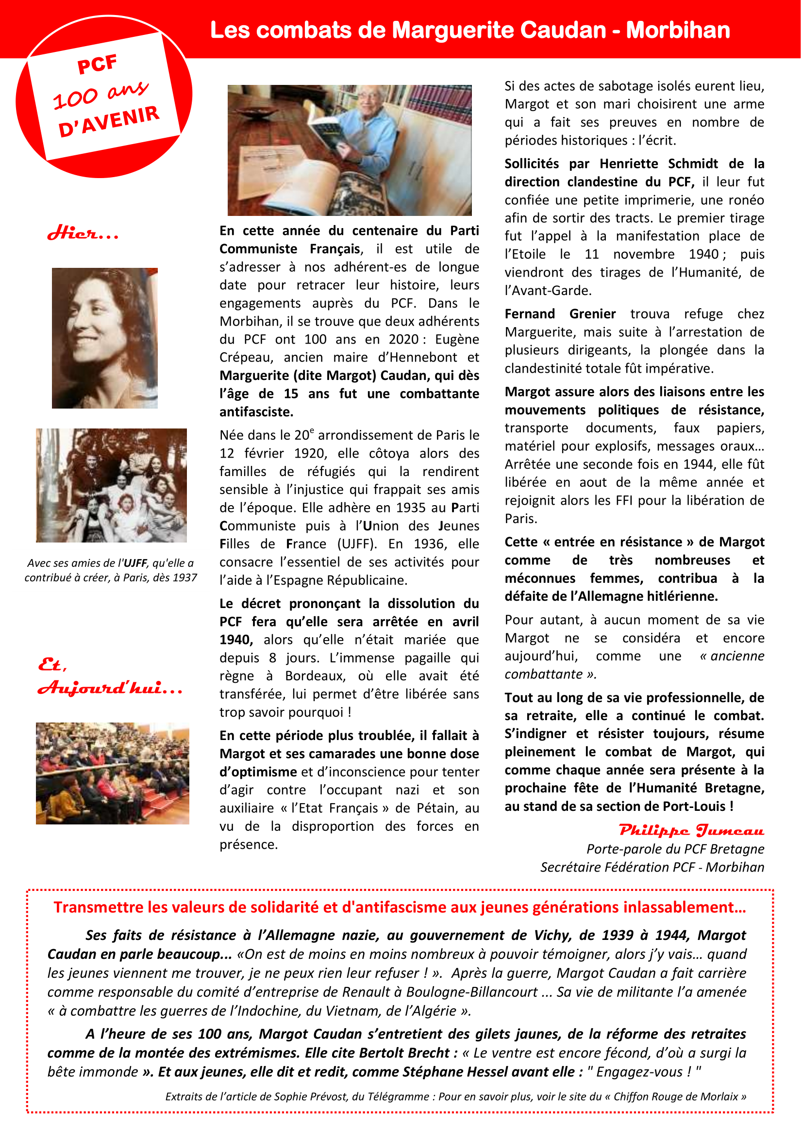Si elle était élue Sénatrice, Isabelle Mazelin suivrait les pas d’une autre sénatrice communiste bretonne, dans les Côtes d’Armor, dont le mandat qui s’achève a été très riche en combats pour les libertés, la solidarité internationale, les services publics, l’accueil des étrangers, l’égalité femmes-hommes: Christine Prunaud, dont nous ne pouvons que saluer son bel engagement dans son mandat de sénatrice.