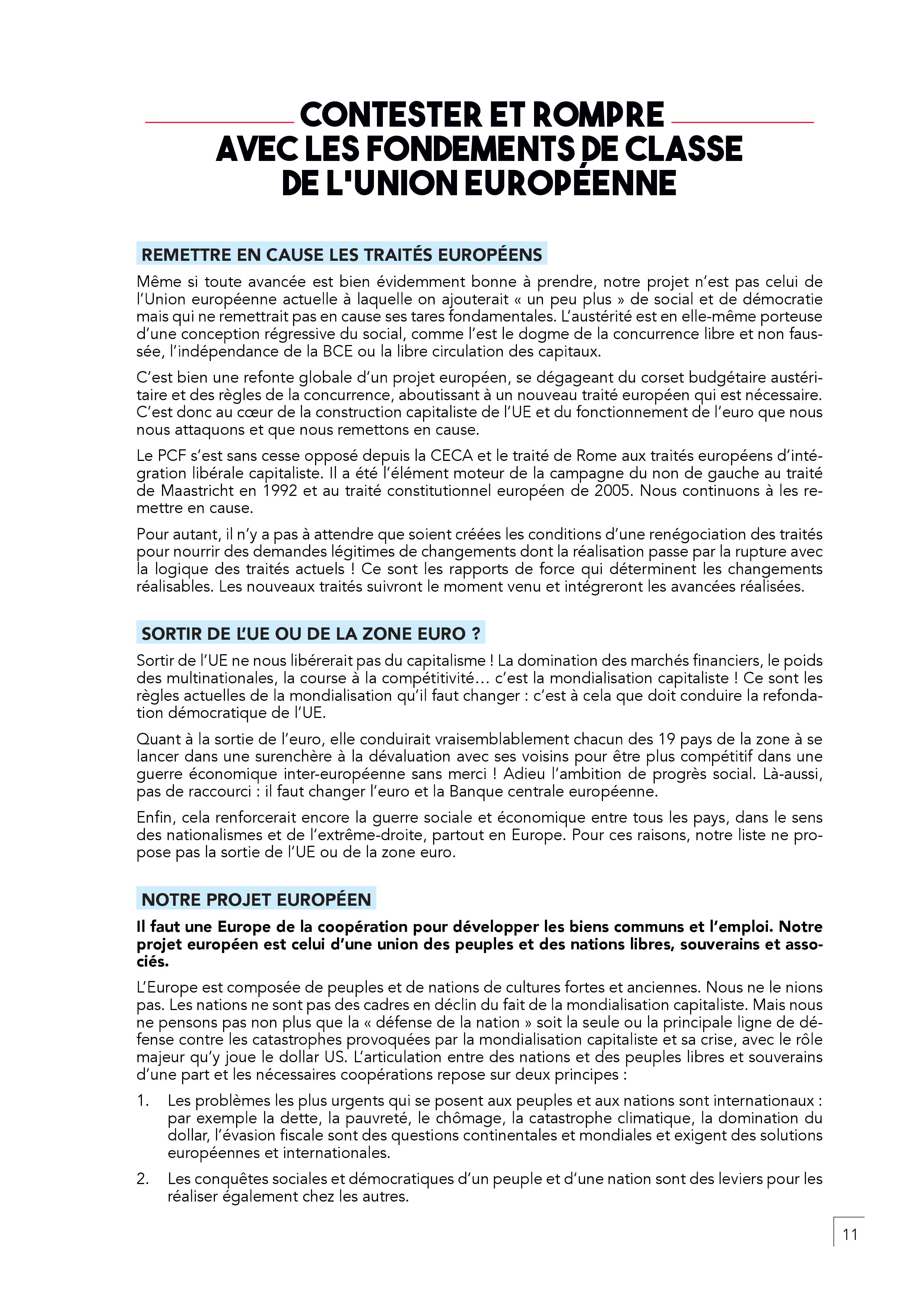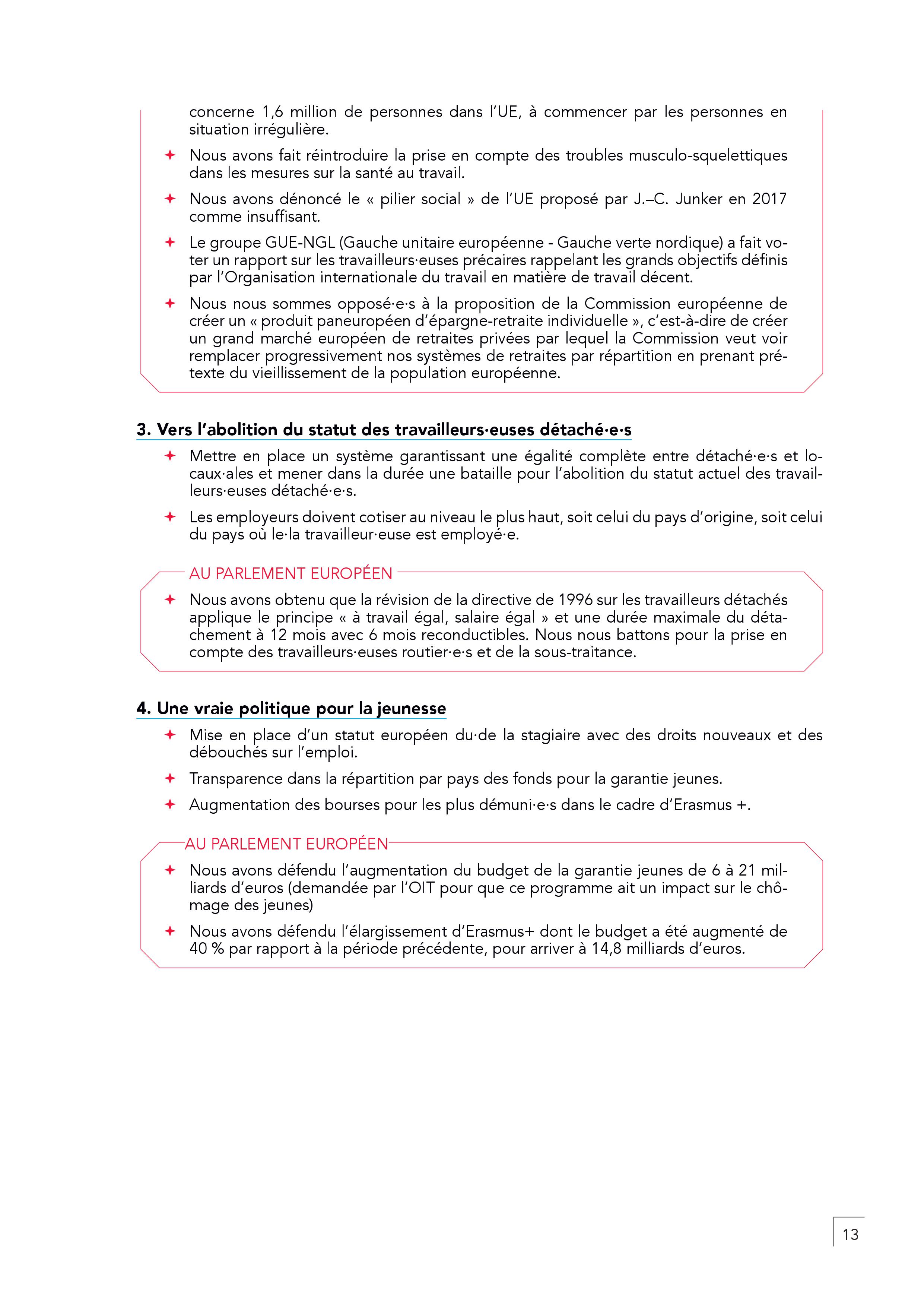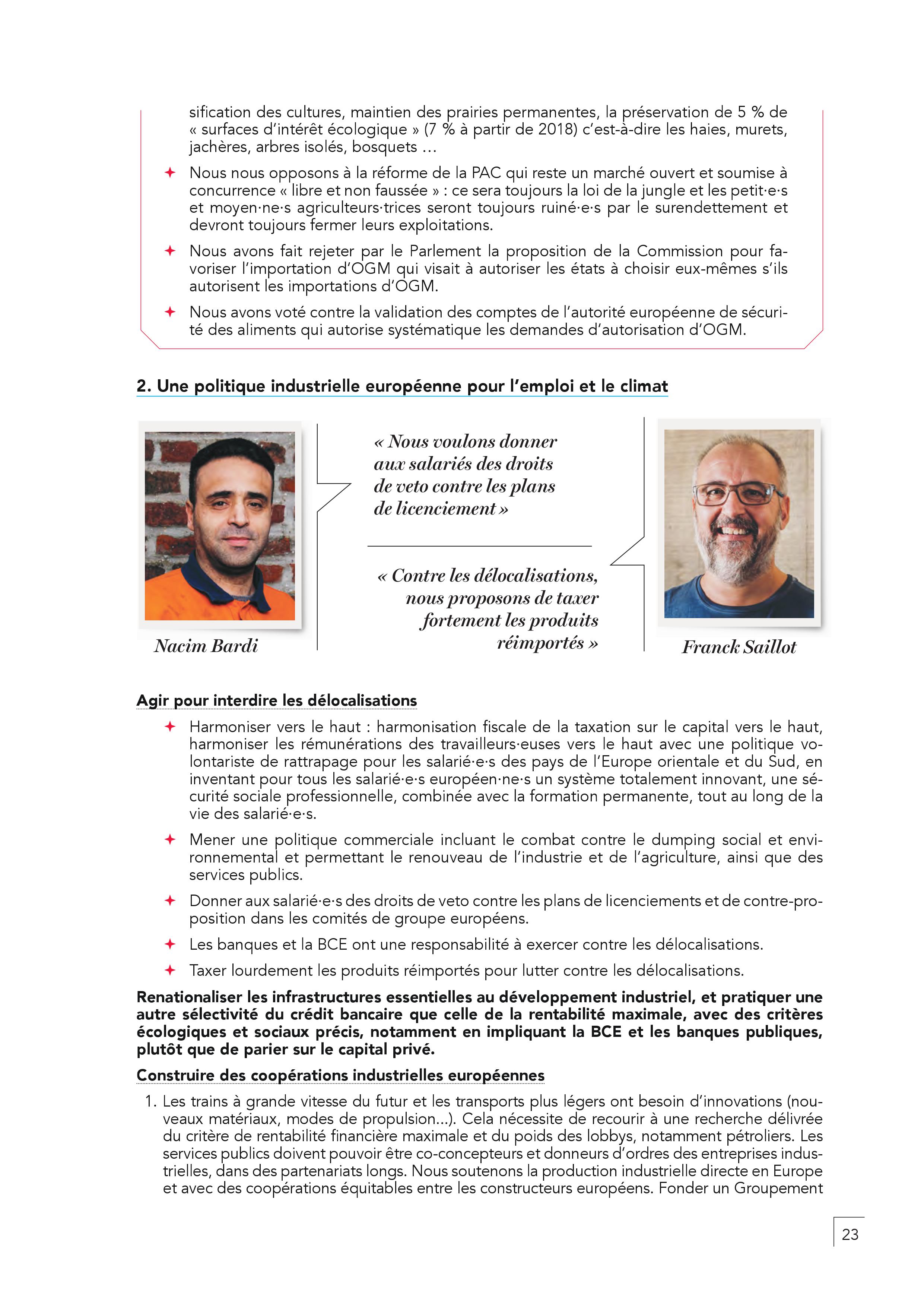 – En finir avec l’austérité, les délocalisations, la mise en concurrence par le travail détaché. Il faut harmoniser par le haut les salaires en commençant par un SMIC européen. Toute personne qui travaille en France doit être protégée par un contrat français.
