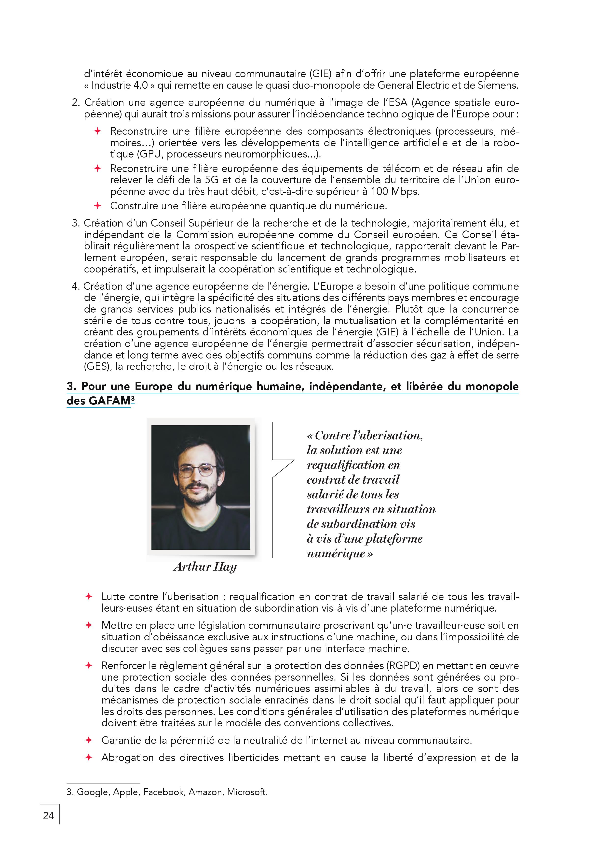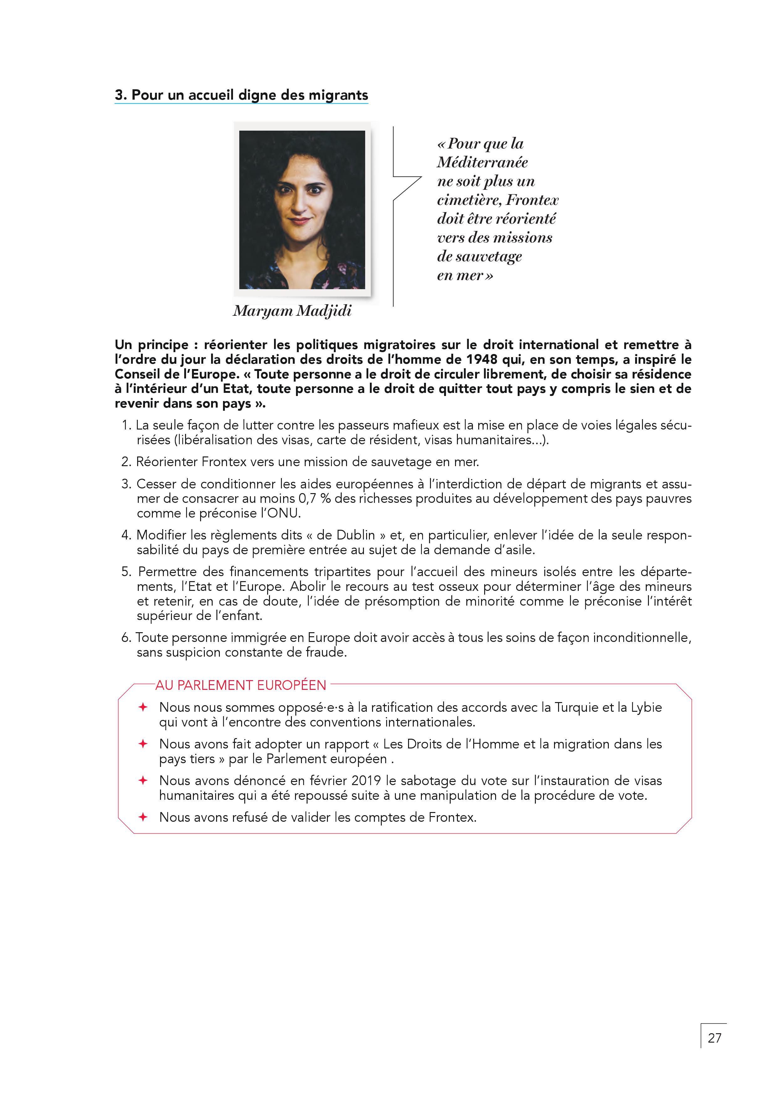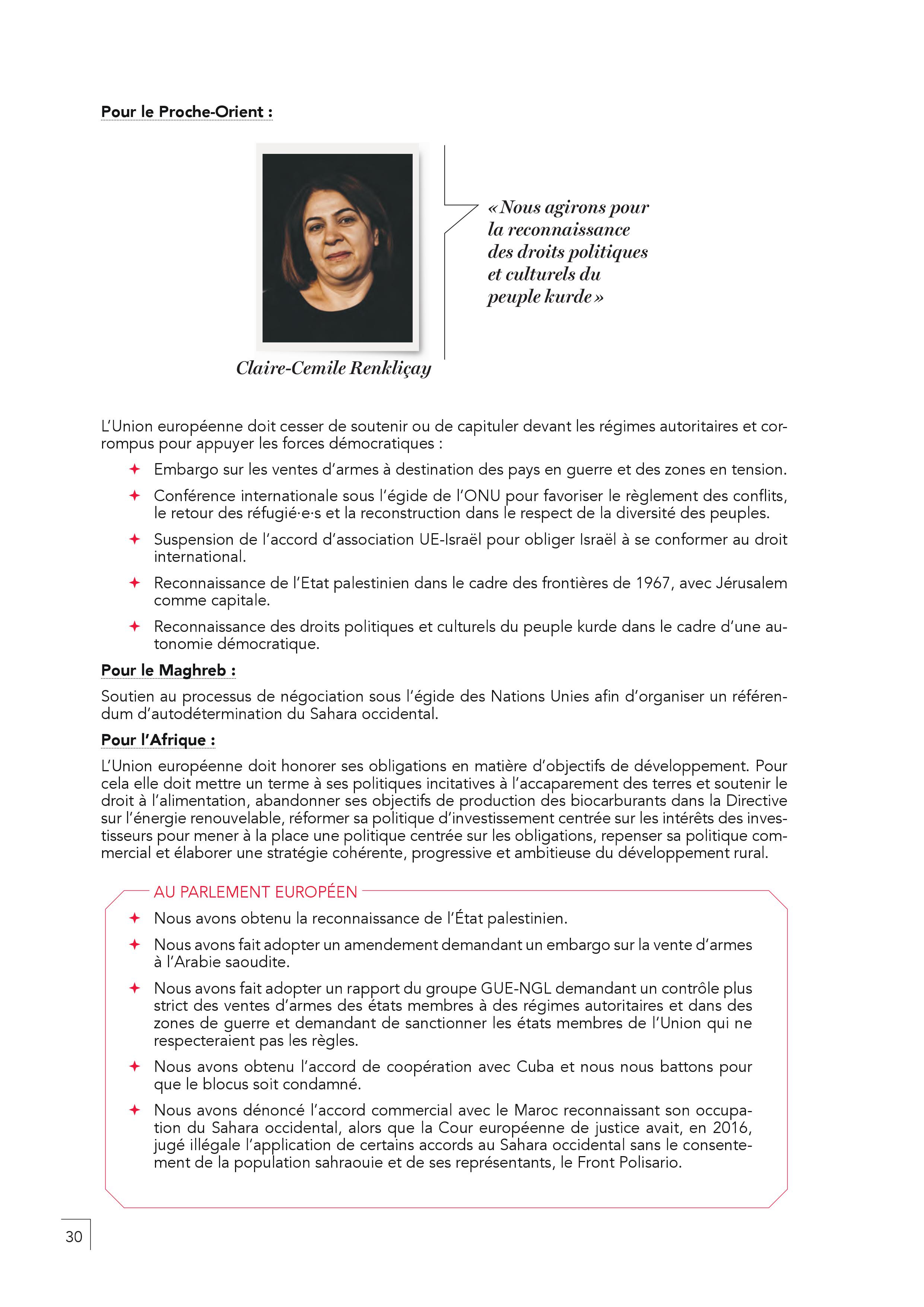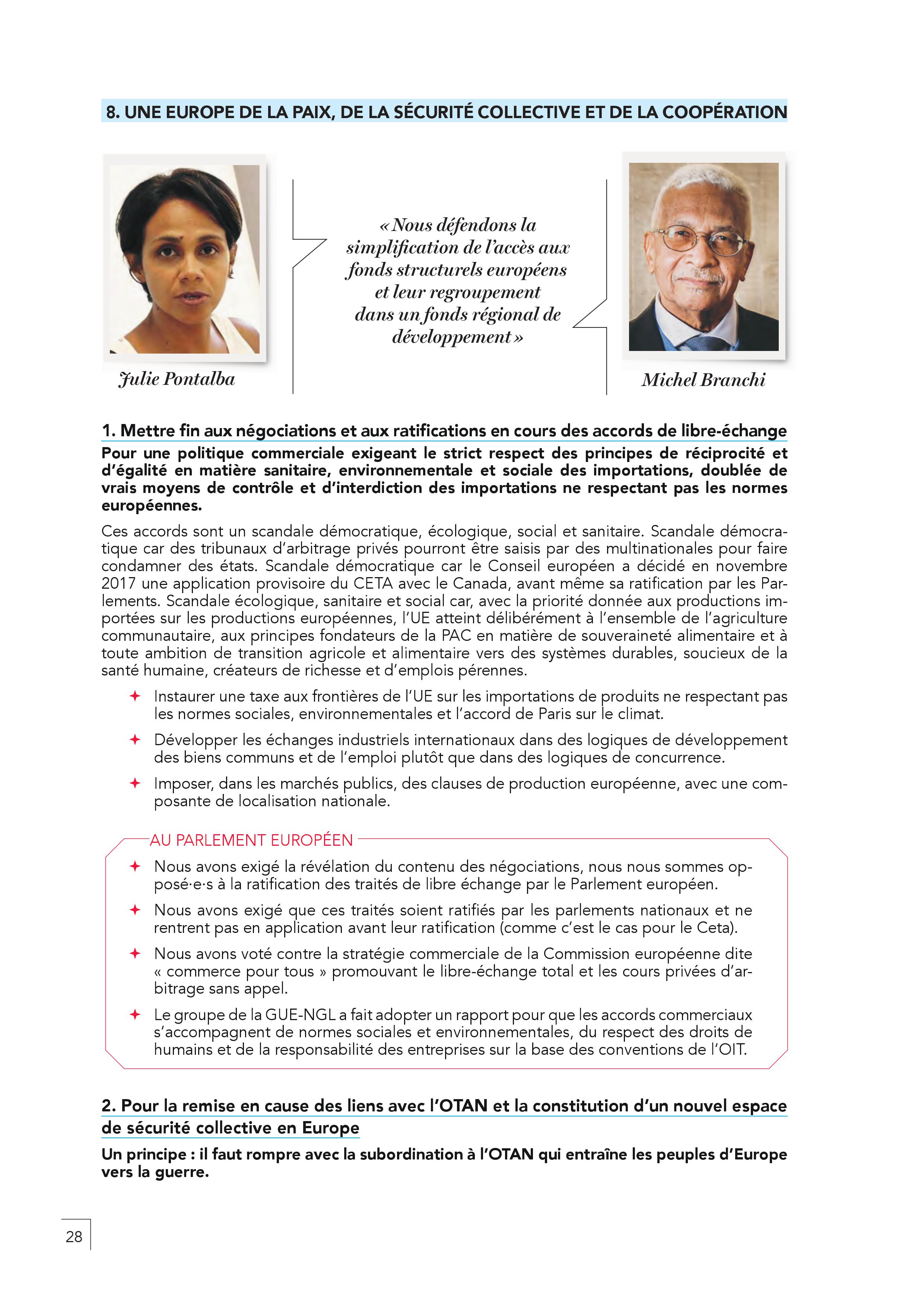 – En finir avec l’austérité, les délocalisations, la mise en concurrence par le travail détaché. Il faut harmoniser par le haut les salaires en commençant par un SMIC européen. Toute personne qui travaille en France doit être protégée par un contrat français.