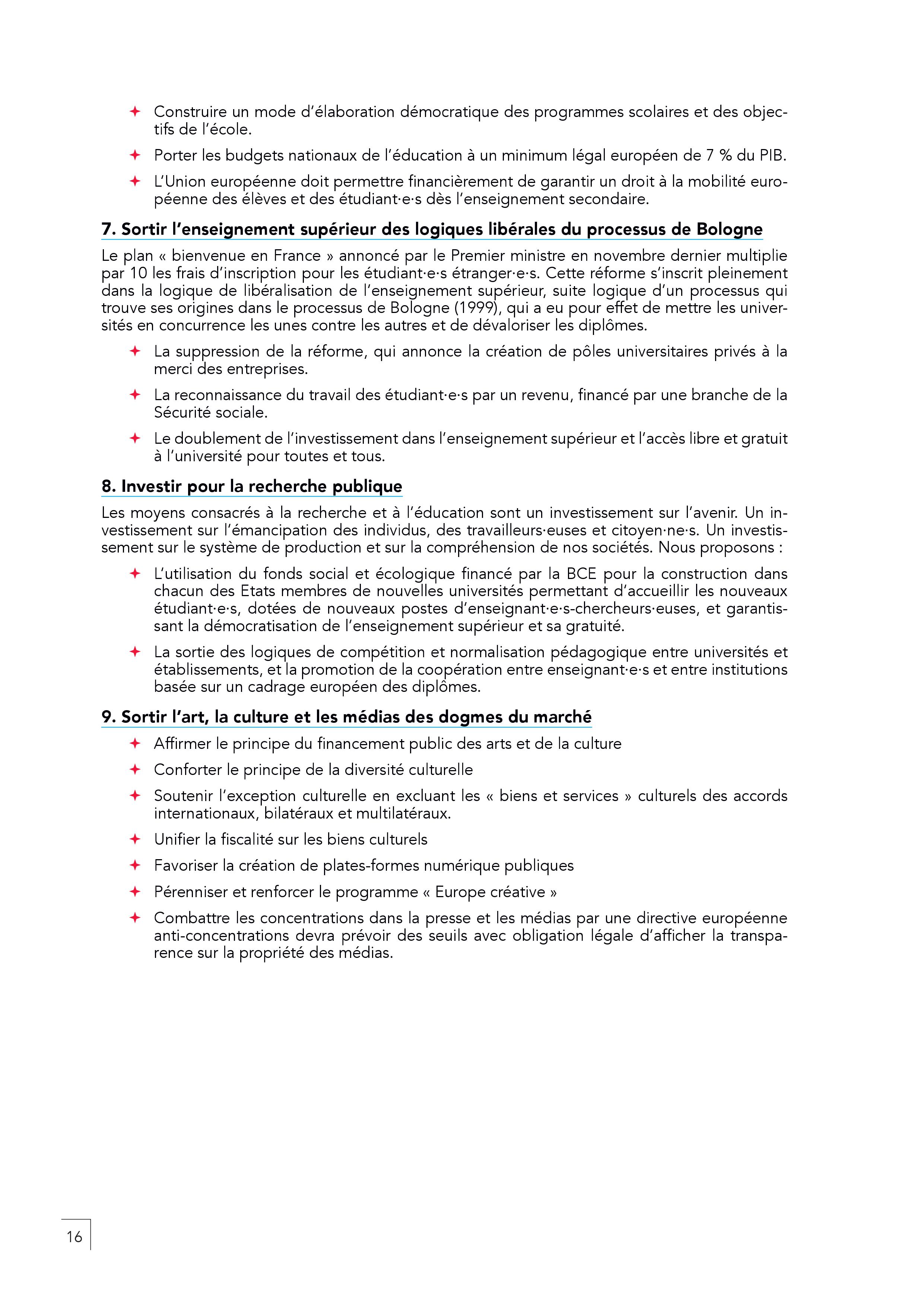 – Transformer la Banque centrale européenne: l’argent doit servir à financer l’emploi et les services publics et cesser d’alimenter les dividendes des actionnaires.