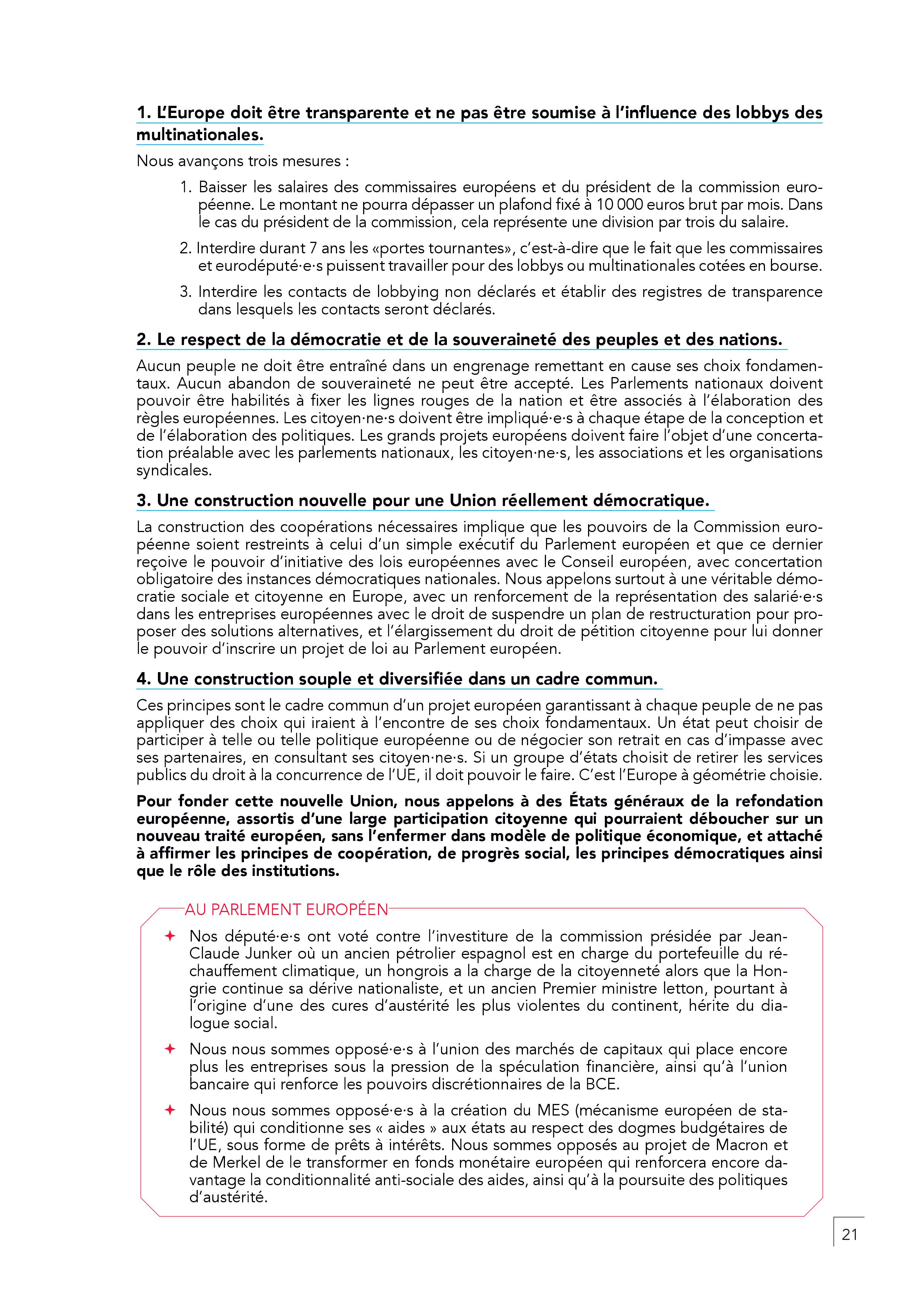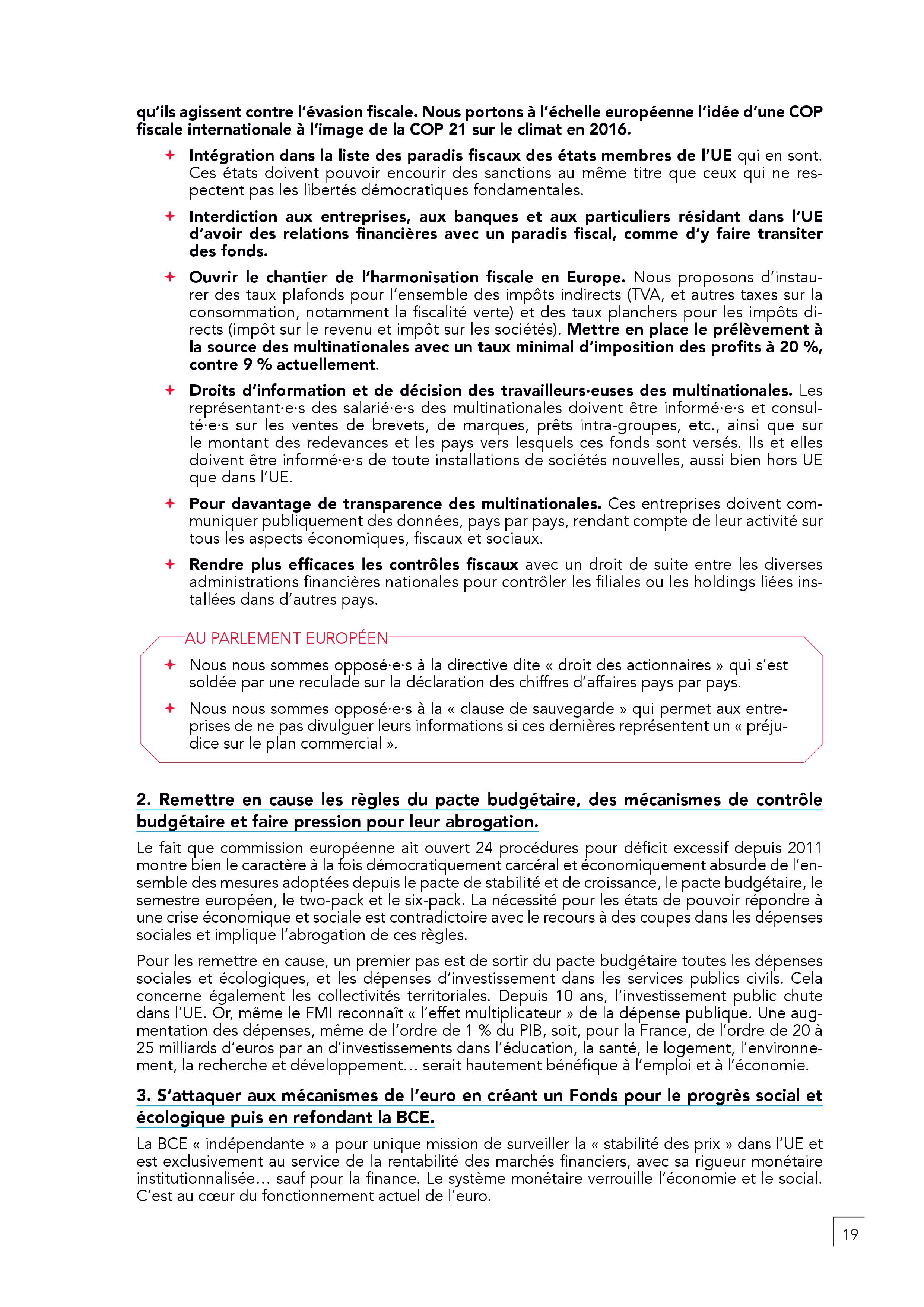 – Diviser par trois le salaire du Président de la Commission européenne, interdire la fraude fiscale et prélever à la source les multinationales à un taux minimal de 20 %.