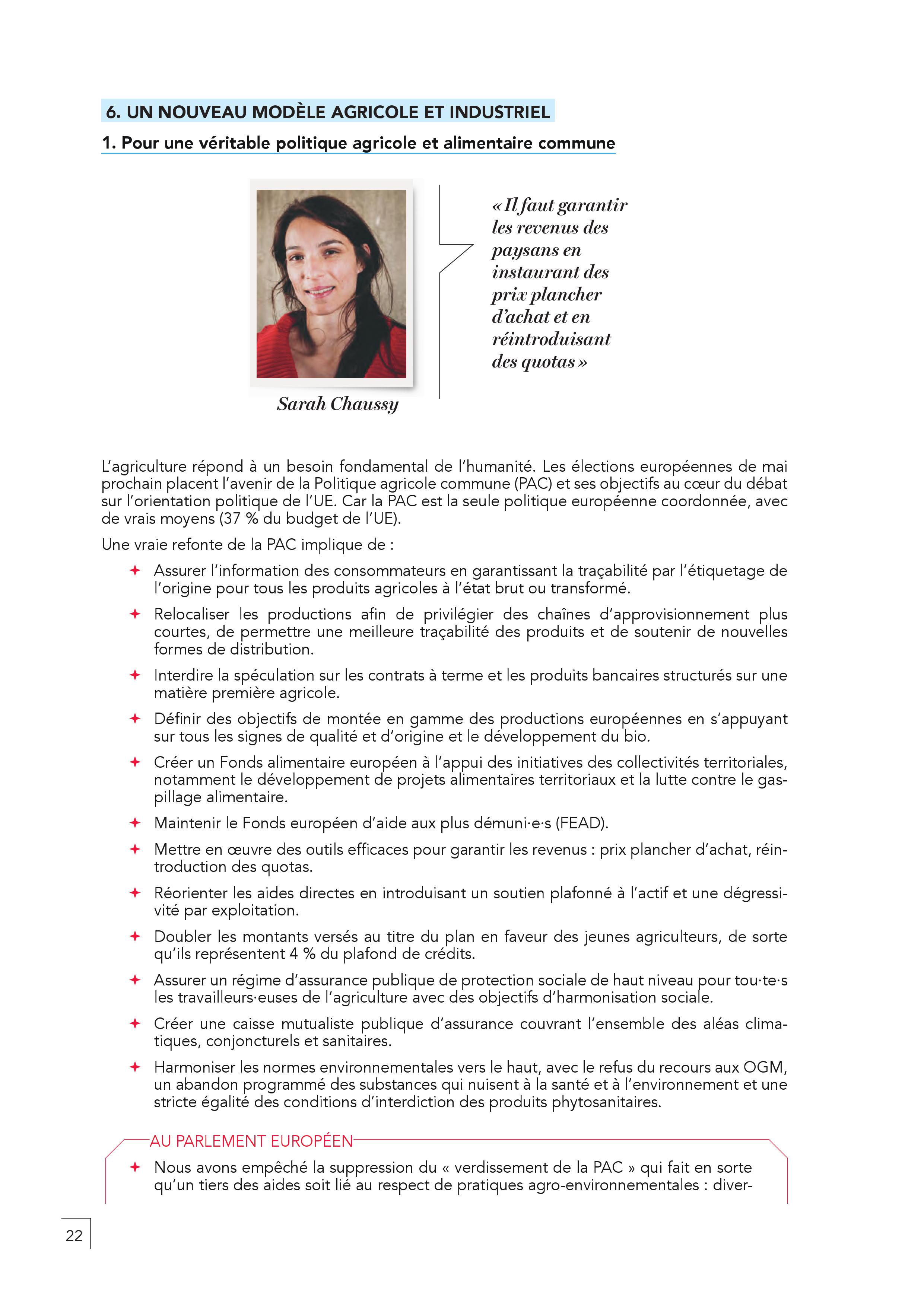 – La refonte totale de la PAC pour assurer des revenus décents aux agriculteurs, relocaliser les productions, harmoniser les normes environnementales vers le haut.