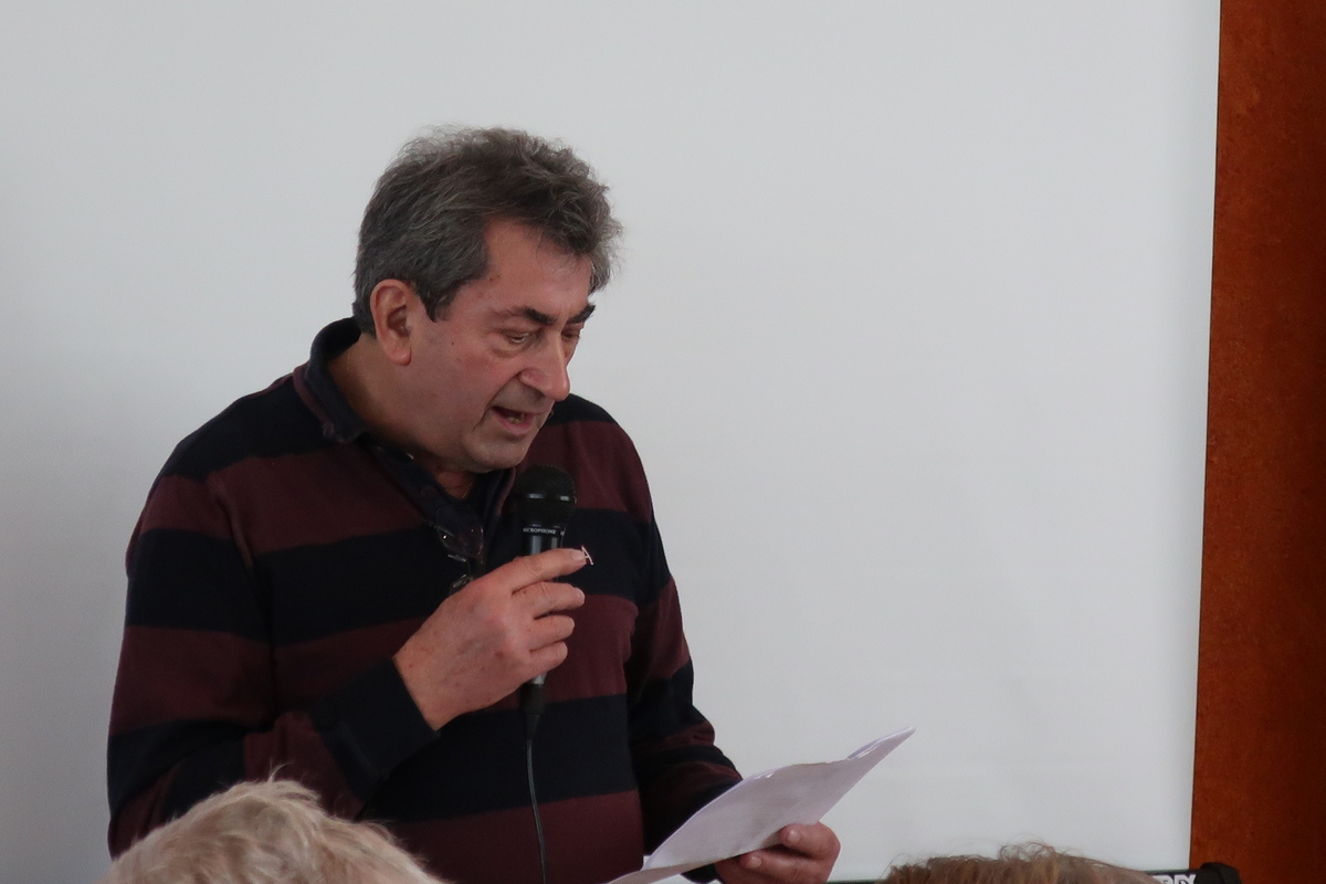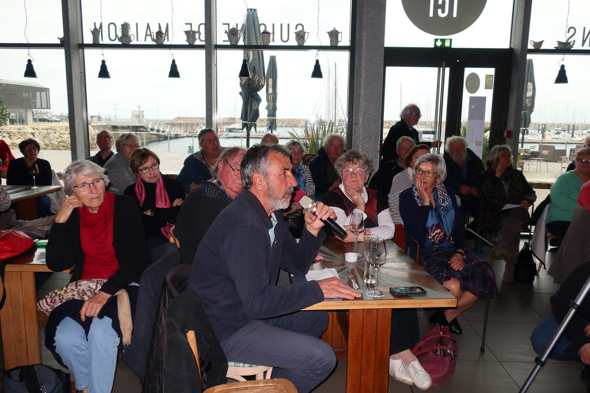 Pour faire un magnifique discours d’hommage aux Penn Sardin des années 1923-1924-1925 avec des résonances dans l’actualité sociale, ou pour chanter Amsterdam de Brel avec une voix magnifique, pour servir le repas, Etienne Le Bellec, élu PCF au Guilvinec, toujours impeccable!