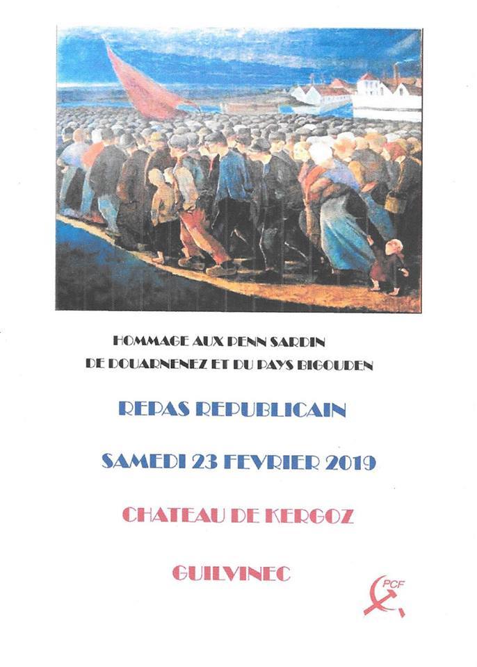 C’était hier au Repas Républicain de la section PCF du Pays Bigouden au château de Kergoz entre l’école Louise Michel, la rue George Politzer et la rue Neruda. Il reste des traces des Rouges dans ce pays de communisme populaire, chez les marins-pêcheurs et les ouvrières des conserveries.