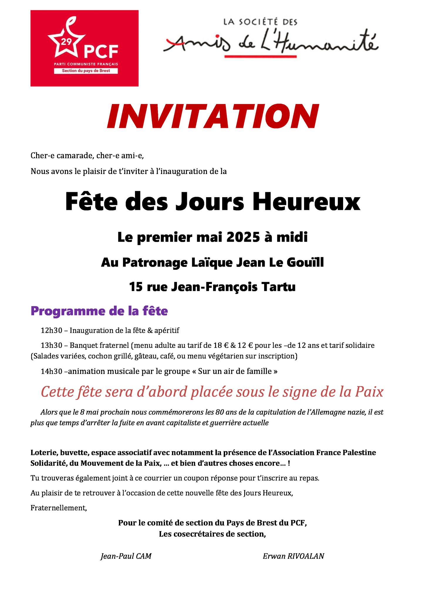 Alors, chers amis, chers camarades, merci pour votre écoute, votre engagement, votre présence. Et avec fierté, avec joie, avec force, je déclare ouverte cette 59ème Fête du Viaduc !