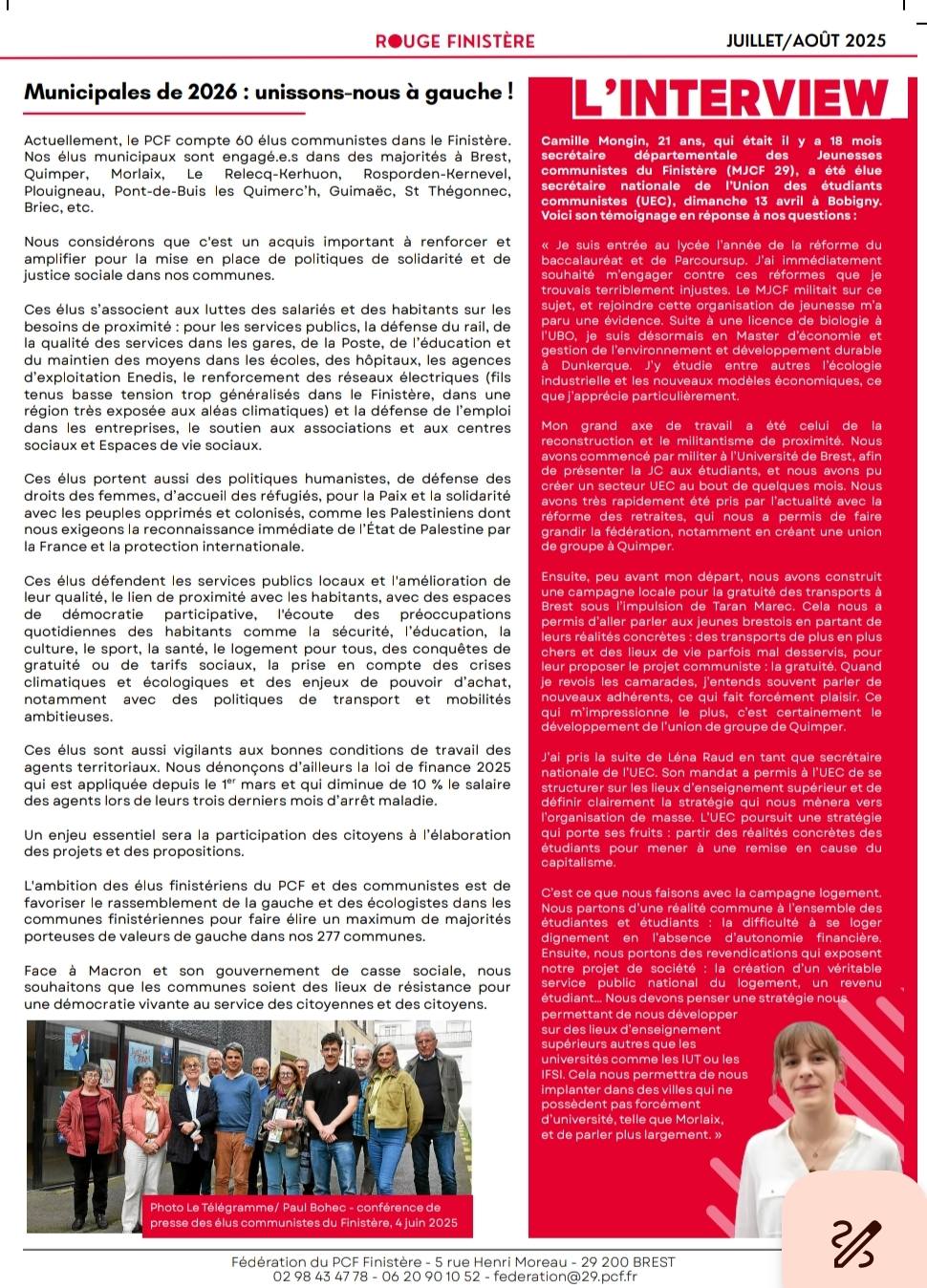 Municipales de 2026 : unissons-nous à gauche pour porter des politiques de solidarité et de justice sociale au service des citoyennes et citoyens finistériens.