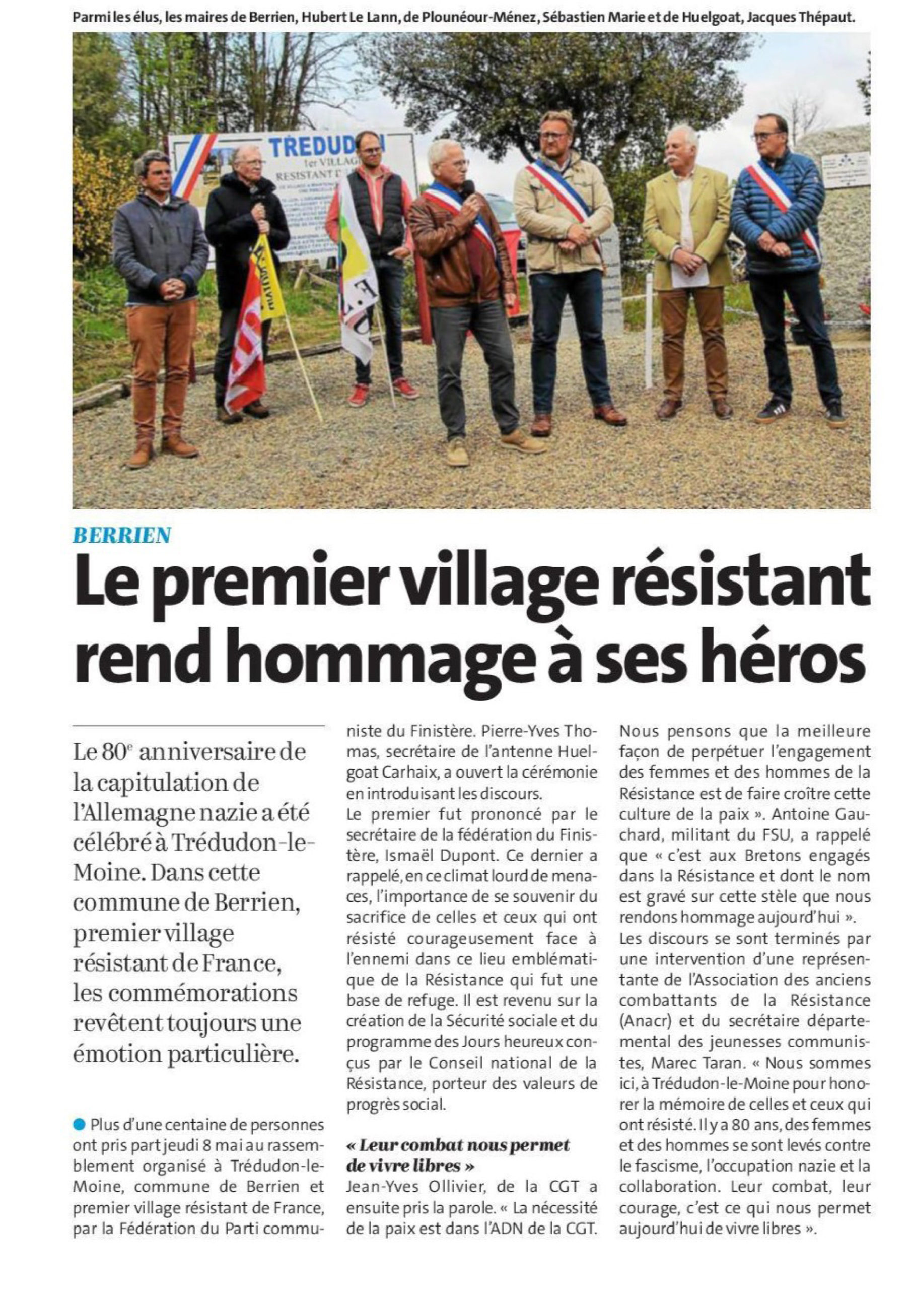 Berrien / Tredudon-le-Moine: Le premier village résistant de France rend hommage à ses héros – Le Télégramme, 10 mai 2025