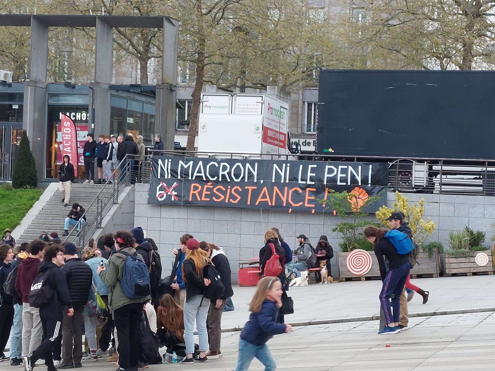 Morlaix – 14 avril – Mobilisation spontanée pour dénoncer la décision du Conseil Constitutionnel d’entériner le coup de force démocratique de Macron et la réforme des retraites