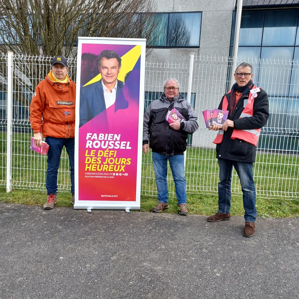 Campagne Fabien Roussel – entreprise Sermeta à Morlaix – Les communistes et le comité des jours heureux distribuent 500 programmes de Fabien Roussel devant l’entreprise: excellent accueil!