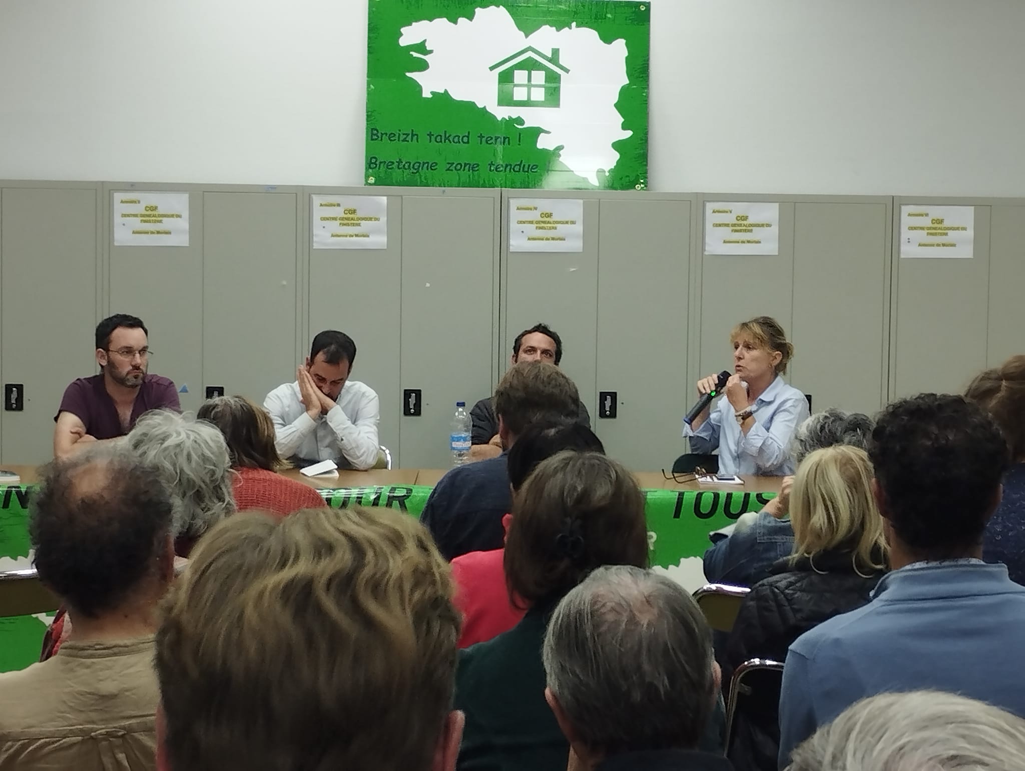 Ce samedi 7 octobre, un débat très intéressant sur le droit au logement pour tous en Bretagne à Morlaix, salle de l’ancien lycée de Kernéguès, avec Gladys Grelaud, conseillère régionale communiste, Pierre Le Goff, conseiller départemental et maire de Guimaëc, Maxime Sorin, du collectif Droit à la ville Douarnenez, et Nil Caouissin, conseiller régional régionaliste UDB, et Fabris Cadou, du collectif logement Morlaix à l’organisation et l’animation. Une salle pleine et des débats très riches. Les approches des intervenants étaient complémentaires et Gladys Grelaud a centré son intervention sur le logement public, les inégalités de patrimoine et d’accès aux logements comme multiplicateurs d’inégalités, le logement d’urgence.