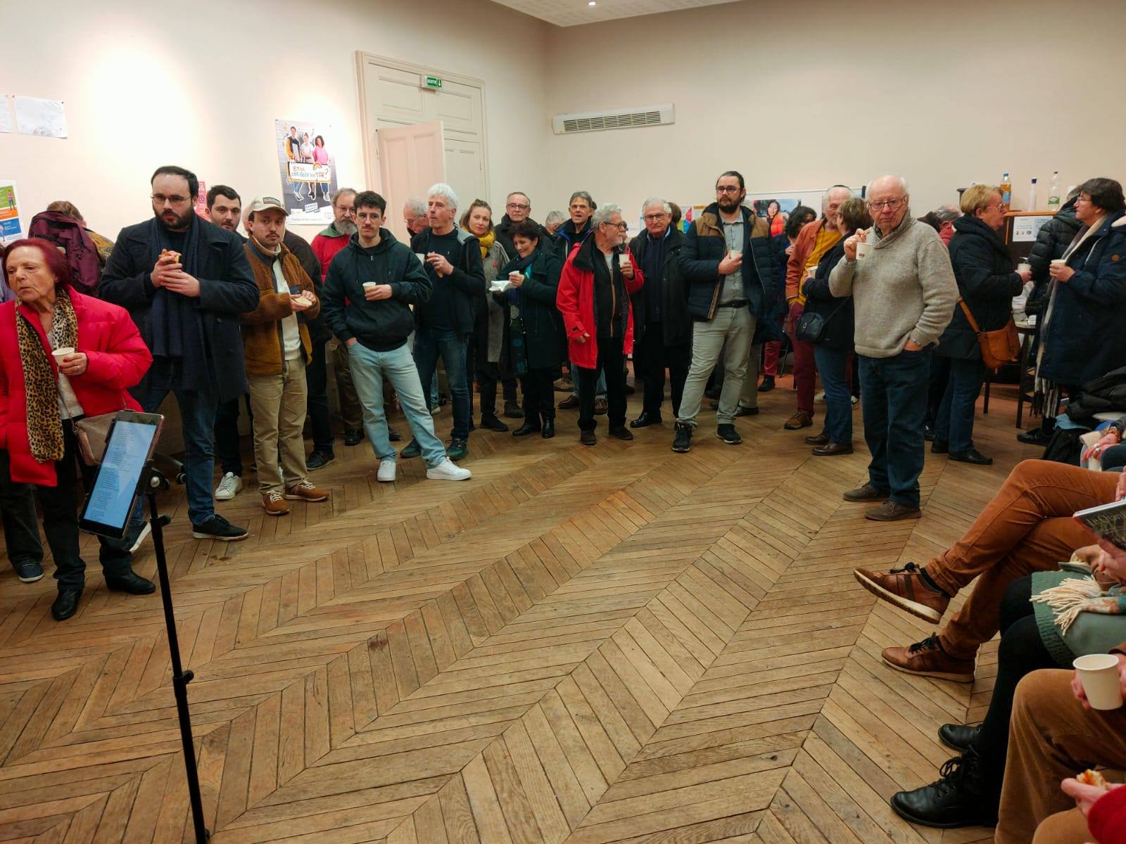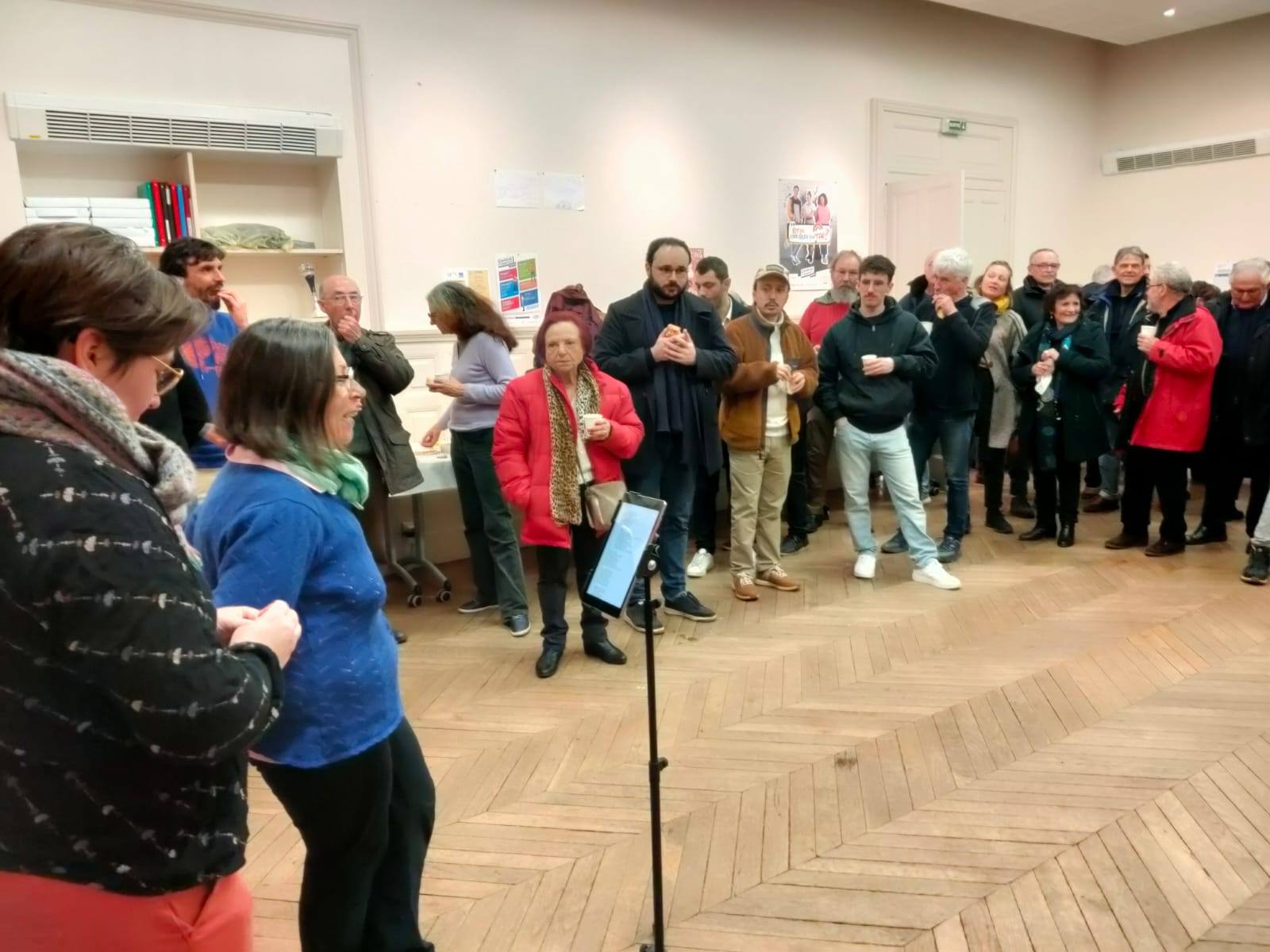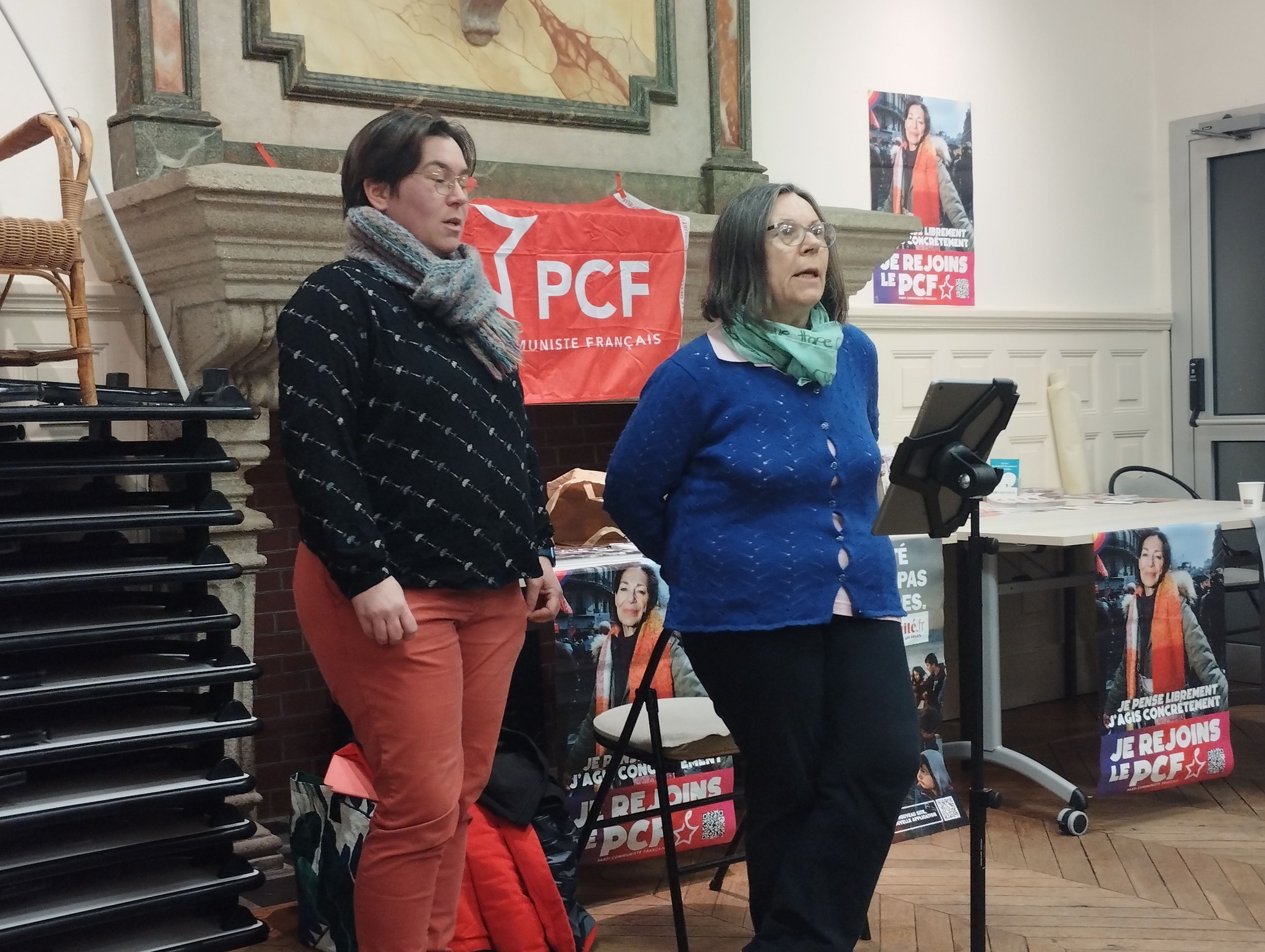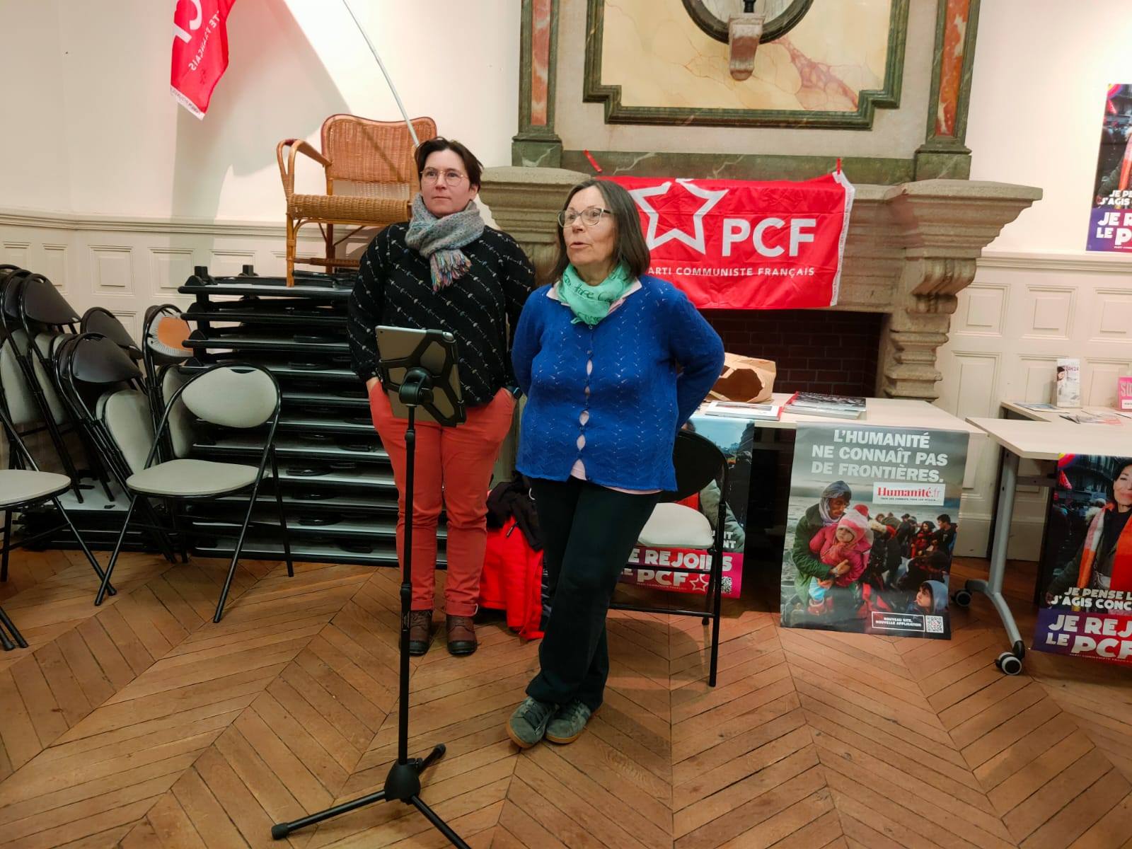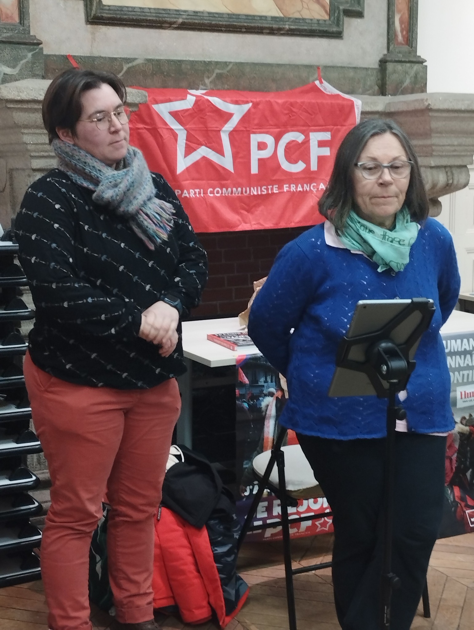 Vœux du PCF Finistère à Douarnenez ce vendredi 17 janvier à l’ancienne mairie de Douarnenez, désormais maison Charles Tillon, où se réunissaient les dirigeants ouvriers, syndicaux et politiques il y a cent ans pour la grève des ouvrières des conserveries : Charles Tillon, Lucie Colliard, Joséphine Pencalet, Daniel Flanchec, etc. Camille Gontier pour la section de Douarnenez, Ismaël Dupont pour la fédération du Parti communiste du Finistère, et Taran Marec pour la Jeunesse communiste ont pris la parole avant l’apéritif dînatoire à l’occasion duquel nous avons écouter les chansons des ouvrières des conserveries du littoral du sud Finistère interprétées par Klervi Riviere et Marie-Aline Lagadic.