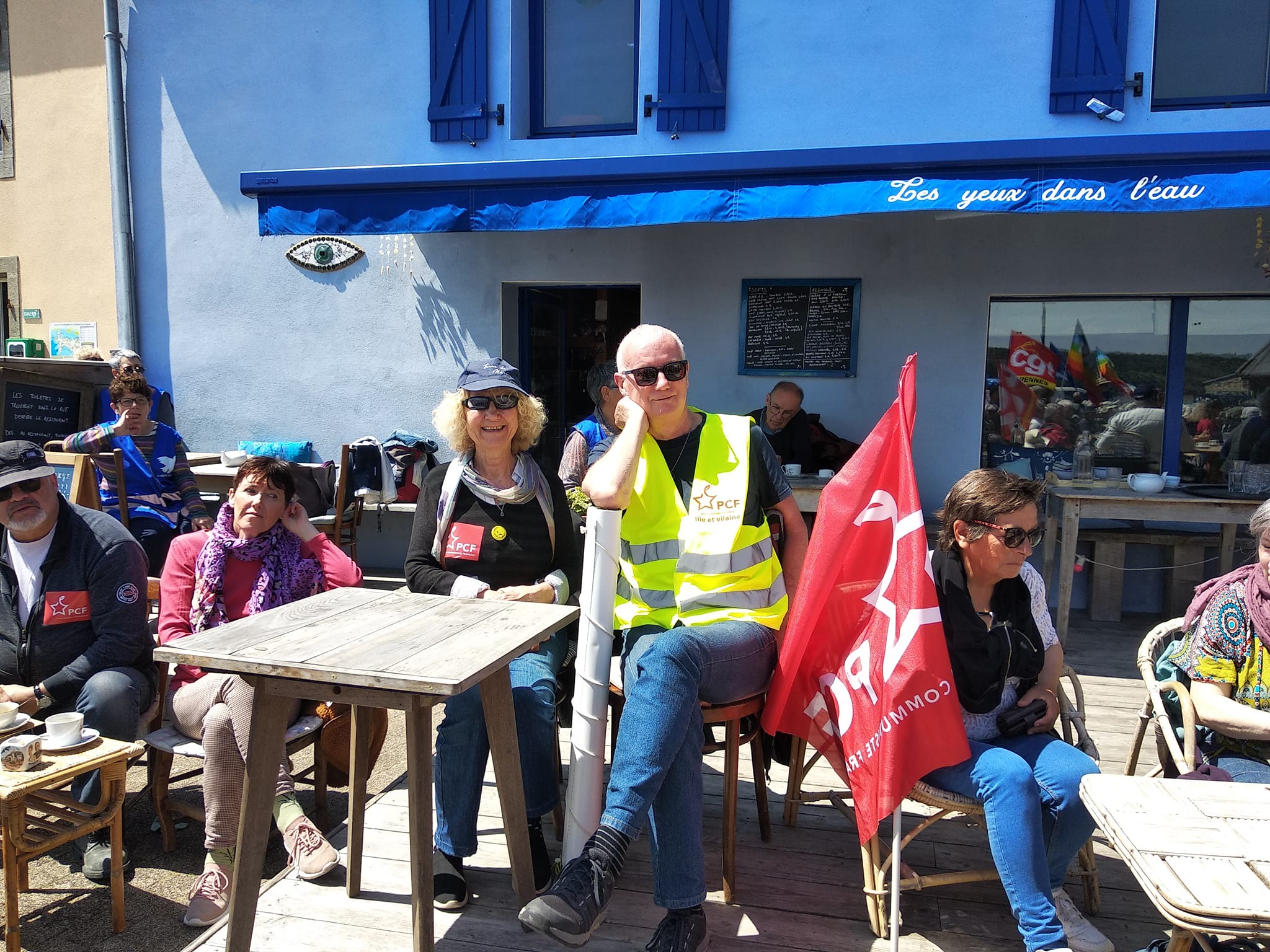 Sous un soleil magnifique et dans une ambiance chaleureuse, nous avons eu le bonheur d’écouter les magnifiques balades musicales et chansons de Pol Huellou et Gilles Le Bigot et de leurs invités, artistes et musiciens wallons, de découvrir l’exposition Yvon Le Corre, ce peintre de la région de Lannion, compagnon de route de la CGT, de l’AFPS, de l’ARAC, du Mouvement de la Paix, et du PCF, disparu il y a quelques années, et à qui l’on doit la grande fresque de la construction du pont de la Corde dans le local du PCF à Morlaix.