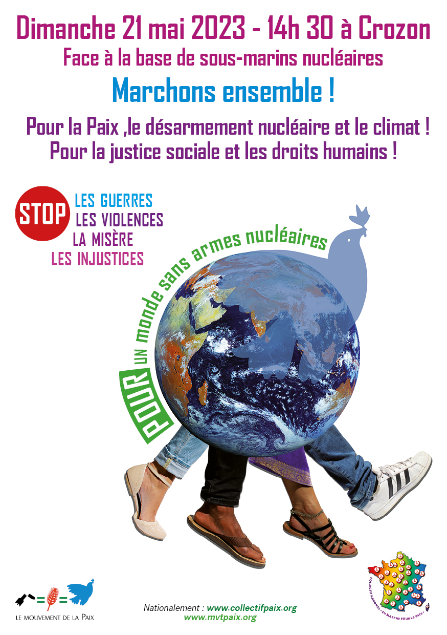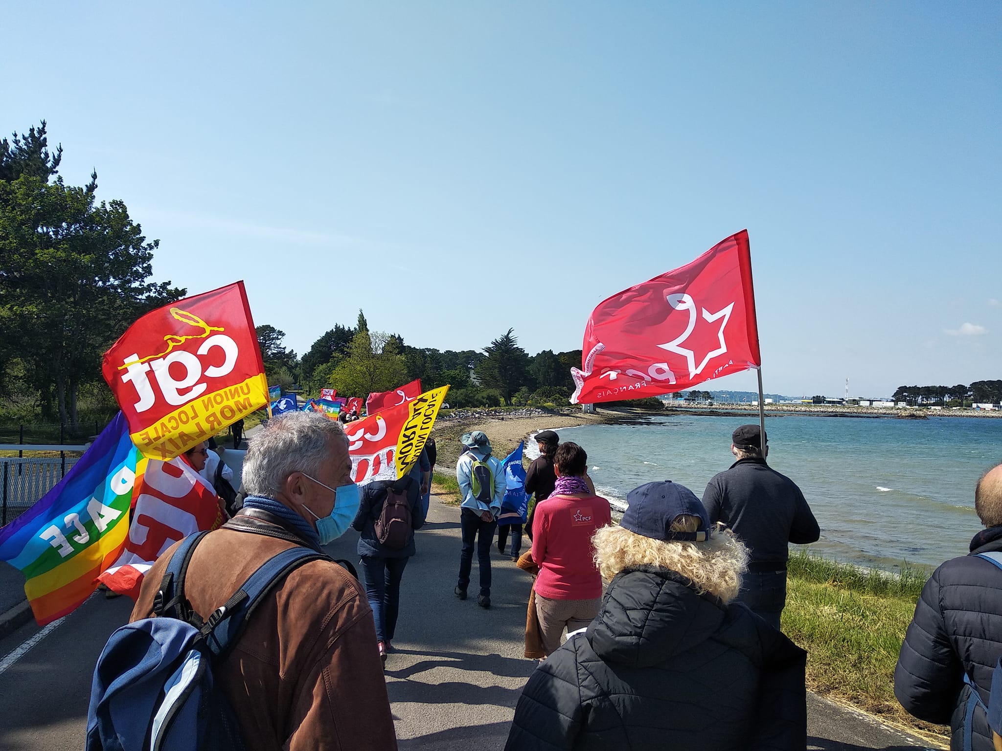 Il y a eu un temps d’interventions et d’échanges sur l’urgence du combat pour la paix, la rupture avec les logiques d’escalade militaire et de course à l’armement, la diplomatie de la paix, avec des interventions du Mouvement de la Paix (Roland Nivet, Noëlle Péoc’h), de la CGT Bretagne, de l’UDB (Anne-Marie Kervern), du NPA (Gérard Mas), de EELV (Laurent Lintanf), du POI, du PCF (Ismaël Dupont), de l’AFPS (Claude Léostic), de l’ARAC (Jean Le Duff) puis entre 17h et 18h a eu lieu la marche vers l’entrée de l’île Longue où sont les sous-marins et missiles nucléaires de la France.