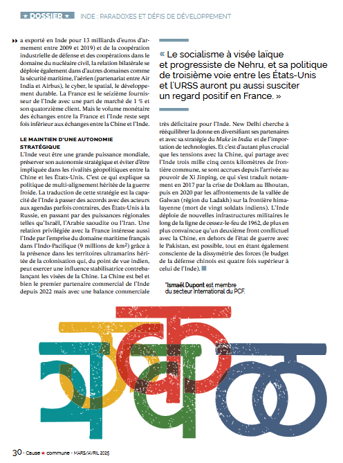 Entre la France et l’Inde, une relation ancienne, des enjeux d’avenir – Un article d’Ismaël Dupont dans la revue Cause Commune, mars-avril 2025