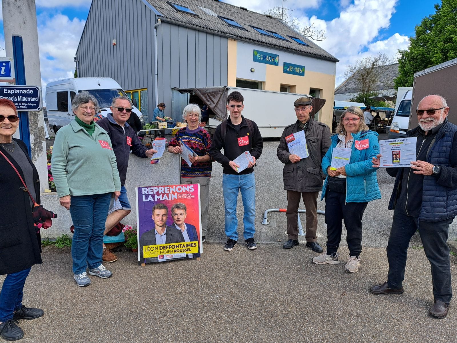 Marché de Pont de Buis, à la rencontre des habitants, Taran Marec notre candidat finisterien sur la liste de Léon Deffontaines, entouré des militants du comité de campagne de la liste sur le secteur de Crozon-Chateaulin-Pont de Buis.