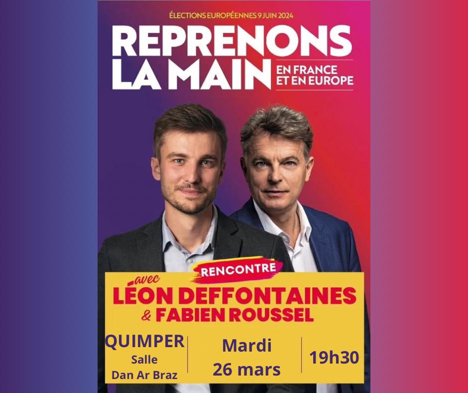 Nous avons le grand honneur et la joie d’accueillir dans le Finistère le mardi 26 mars à 19h30 à Quimper le seul meeting de Léon Deffontaines et Fabien Roussel en Bretagne.