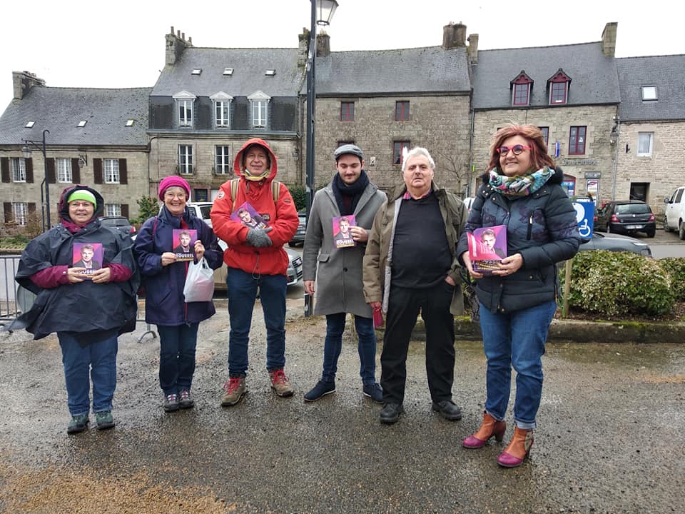 Guerlesquin, 21 février – avec Marie-Francoise Madec, Marie-Helene Le Guen, Pascal Poulliet, Enzo De Gregorio, Serge Bazin, Valérie Scattolin et Ismaël Dupont, distribution de programmes de Roussel ce matin au marché et dans les boîtes aux lettres des habitations. De bons échanges avec les habitants.