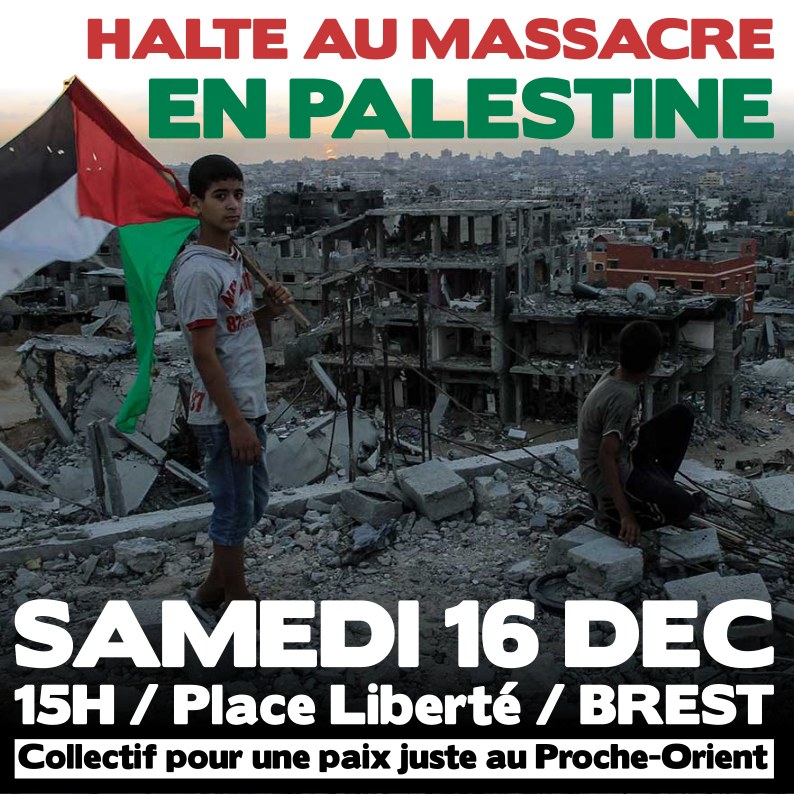 Halte au massacre en Palestine: nouvelle mobilisation le samedi 16 décembre à Brest, place de la Liberté