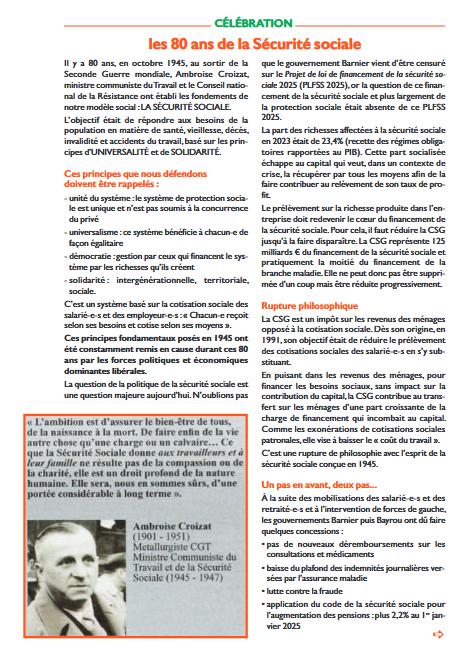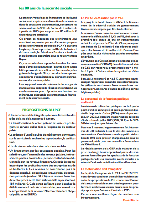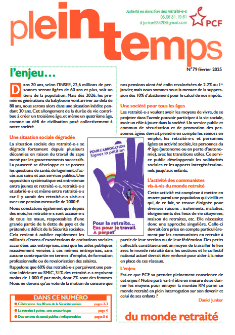 Journal Plein Temps du PCF pour les Retraités – février 2025 – Dossier sur les 80 ans de la Sécurité sociale