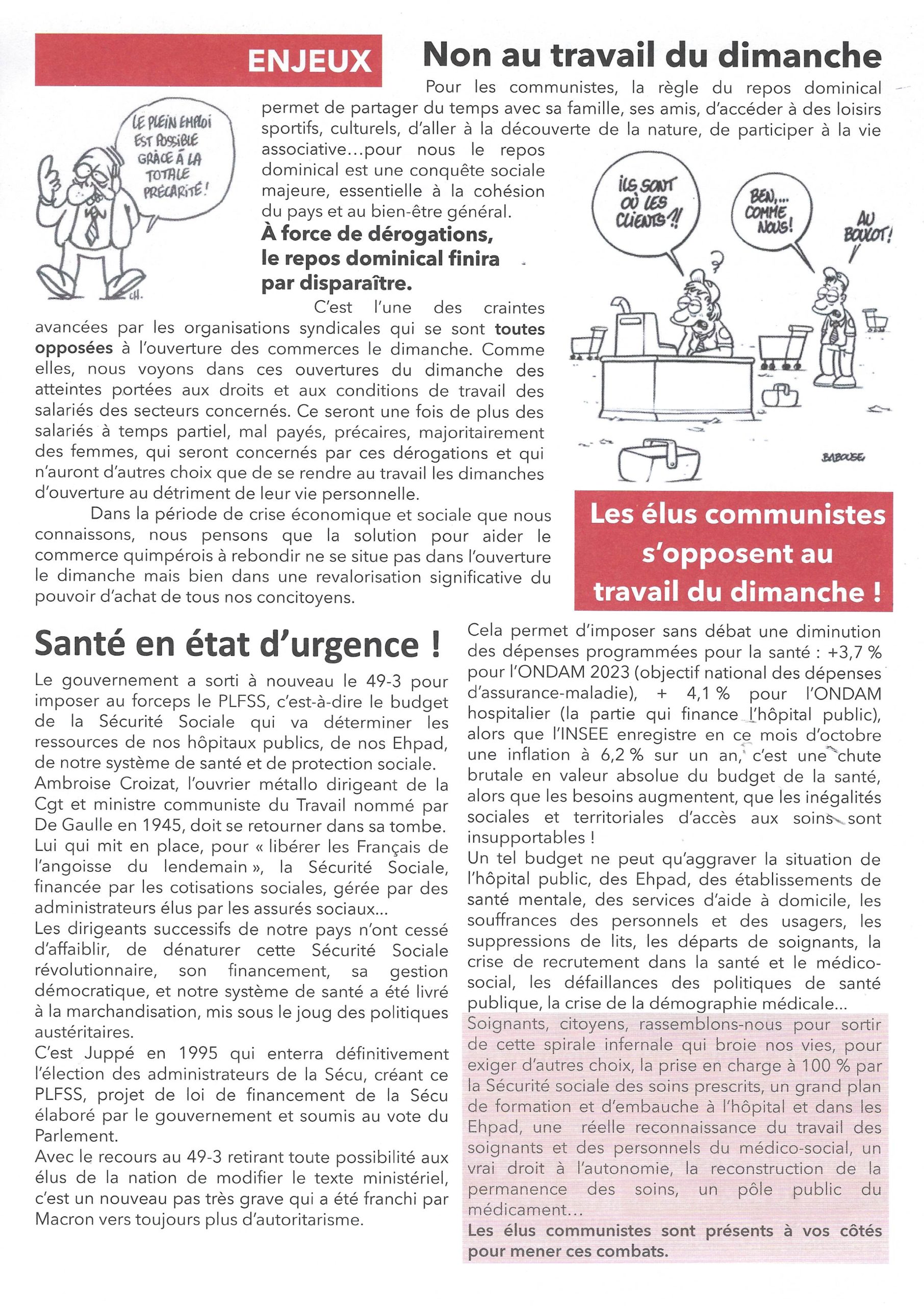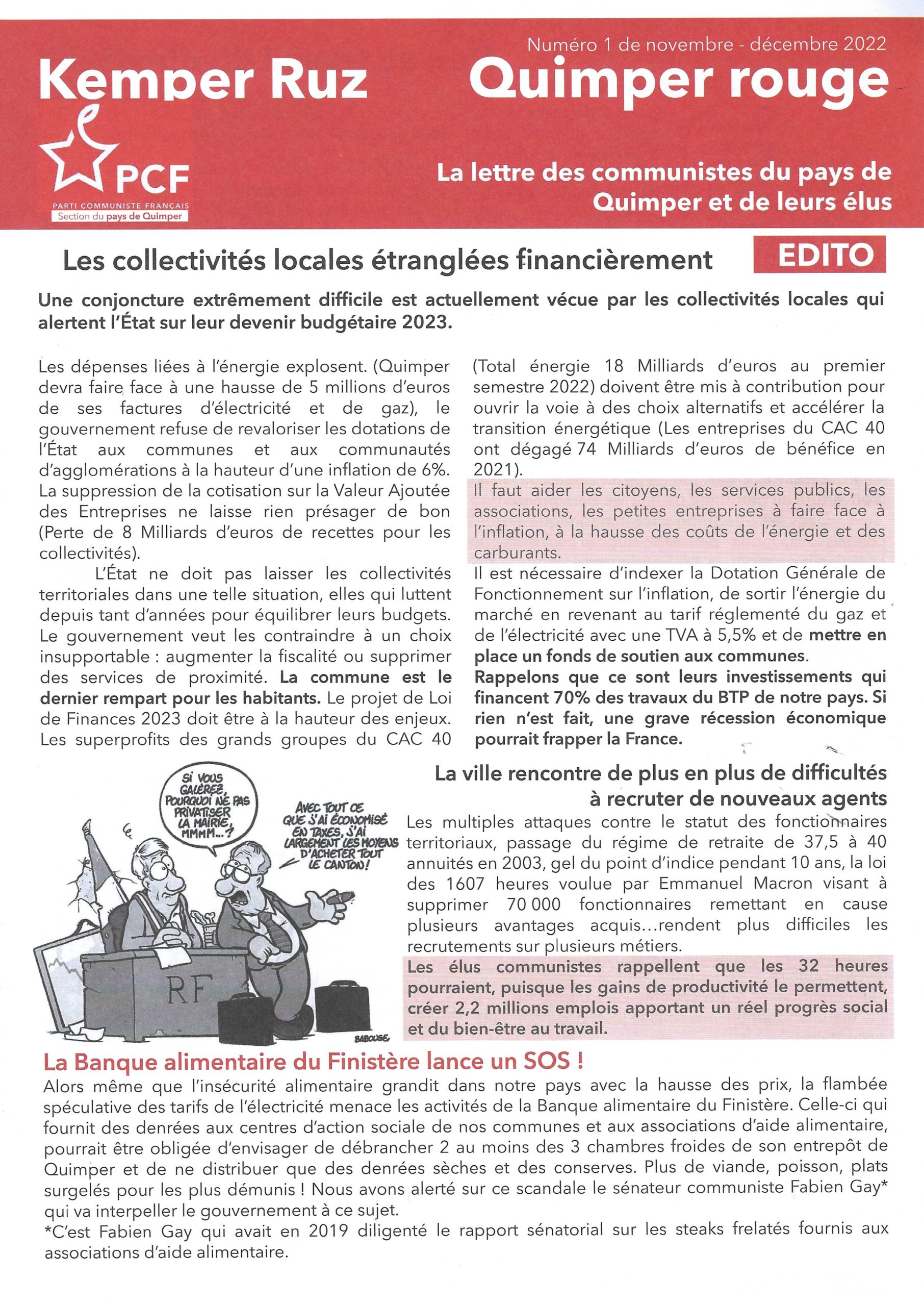 Kemper Ruz- Quimper Rouge: la lettre des communistes du pays de Quimper et de leurs élus, novembre-décembre 2022