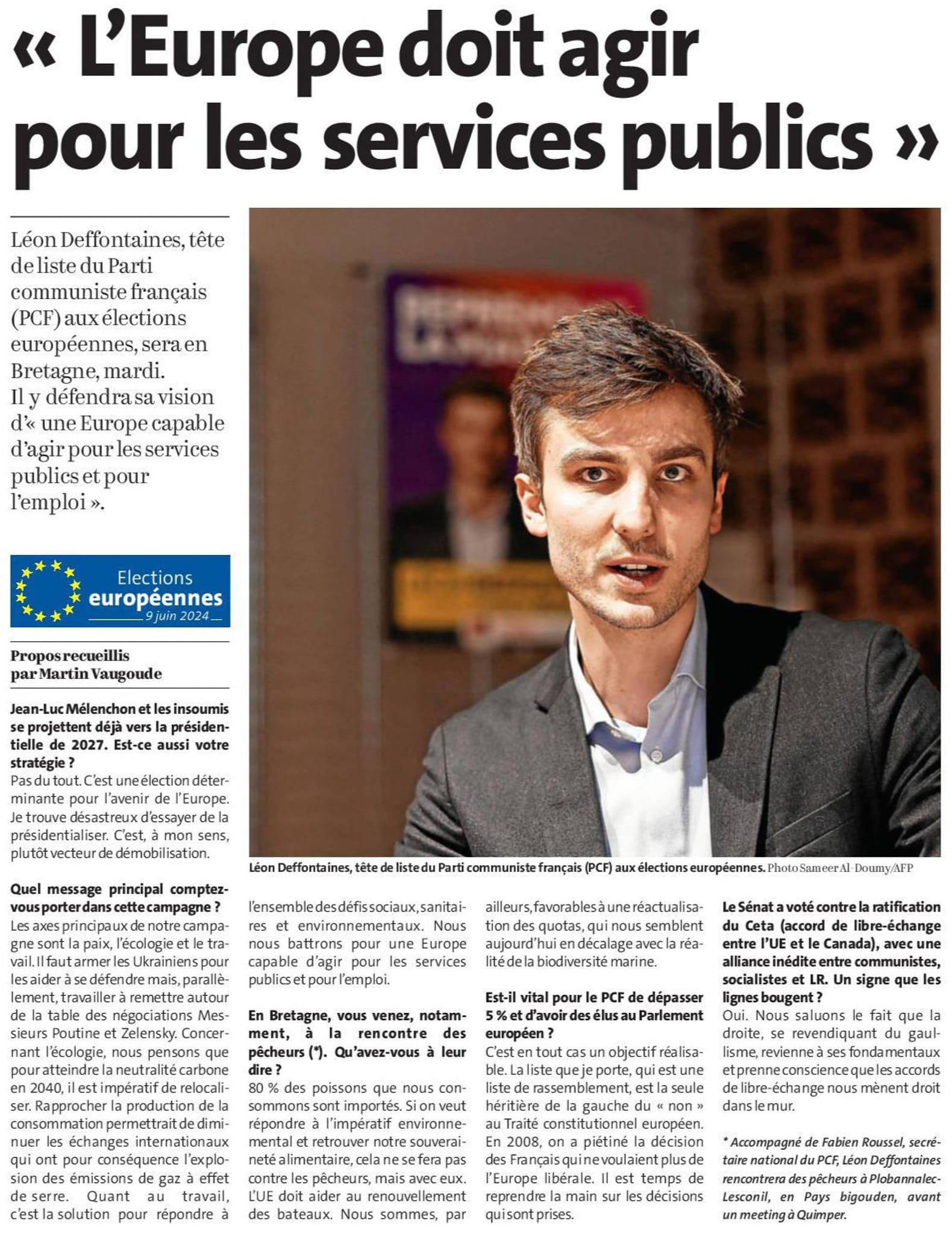 Léon Deffontaines: L’Europe doit agir pour les services publics – Interview dans Le Télégramme, 25 mars 2024