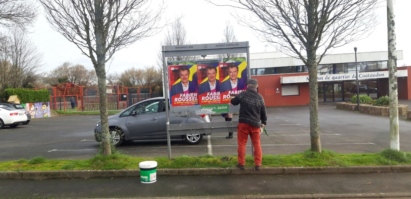 Les jours heureux avec Fabien Roussel. La notoriété de notre candidat progresse ! Constat fait ce samedi sur le marché au Relecq-Kerhuon. Avec aussi collage sur la commune : Costour, Kermadec, Gambetta et sur Guipavas : rue de Brest, le Rody, Coataudon…Avec Pierre-Yves, Bertrand, Larry, Alain, Gilles et Pascal. 2 communes, on augmente la cadence…