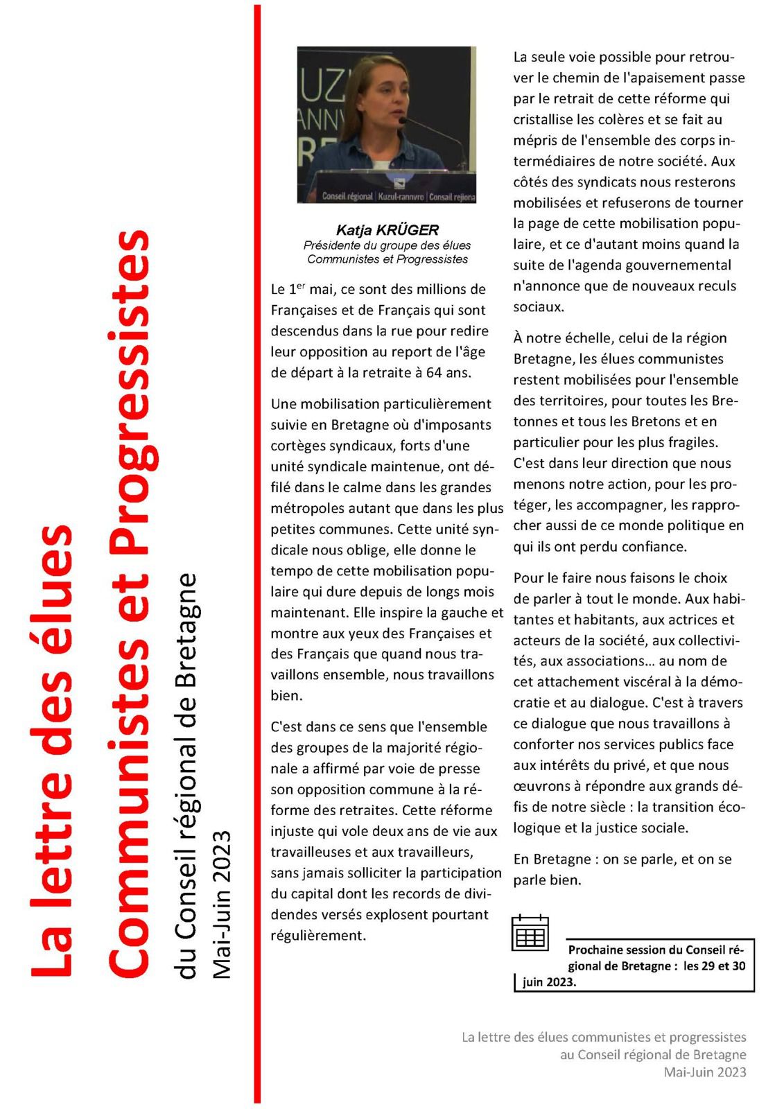 Lettre des quatre élues du groupe communiste et progressiste à la Région Bretagne – juin 2023