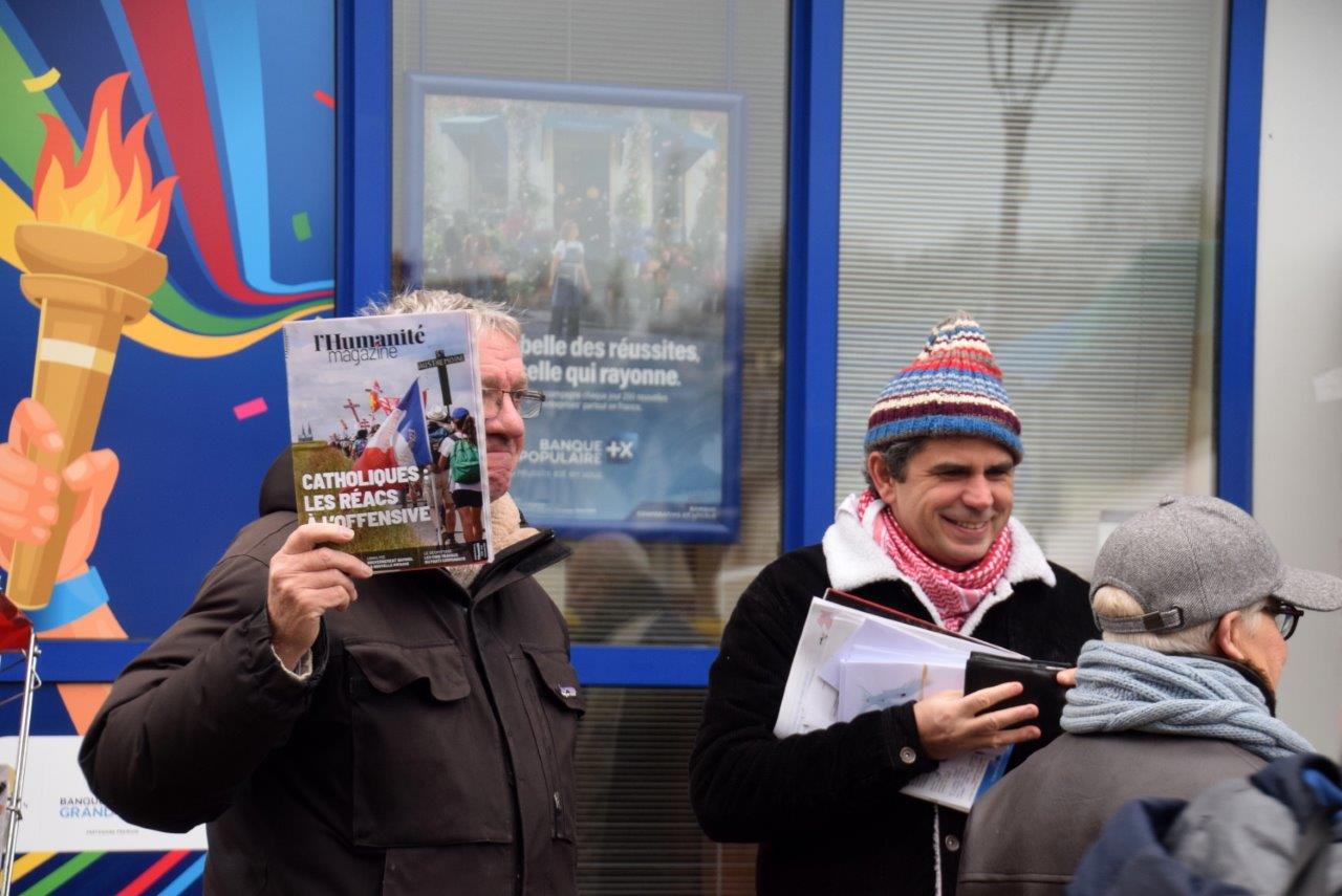 Sur le marché de Morlaix ce samedi 21 décembre, comme les samedis, les camarades du PCF Morlaix vendaient l’Humanité Magazine. Ce matin Ismaël Dupont et Michel Lespagnol ont vendu tous les exemplaires de l’Humanité Magazine (6 de vendus), et distribué des cartes du PCF au président de la République pour la reconnaissance de la Palestine et le journal santé du PCF A cœur ouvert avec l’interview d’André Chassaigne, président du groupe communiste GDR à l’assemblée nationale.
