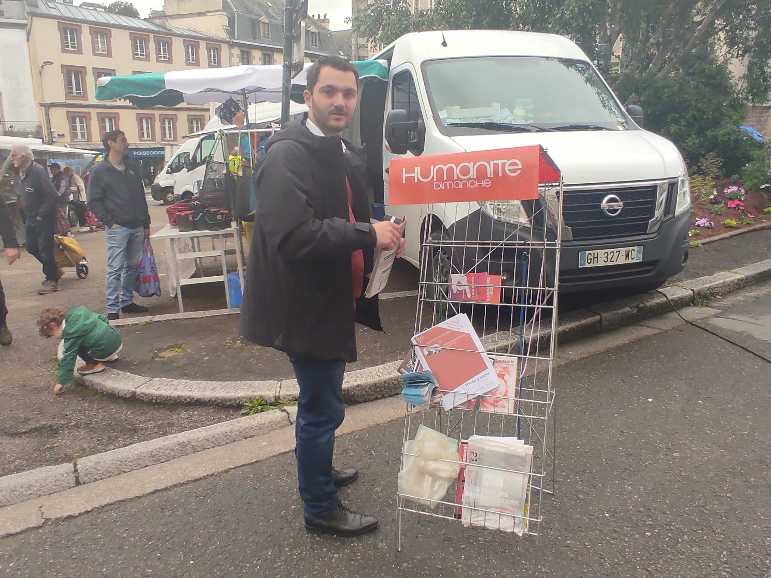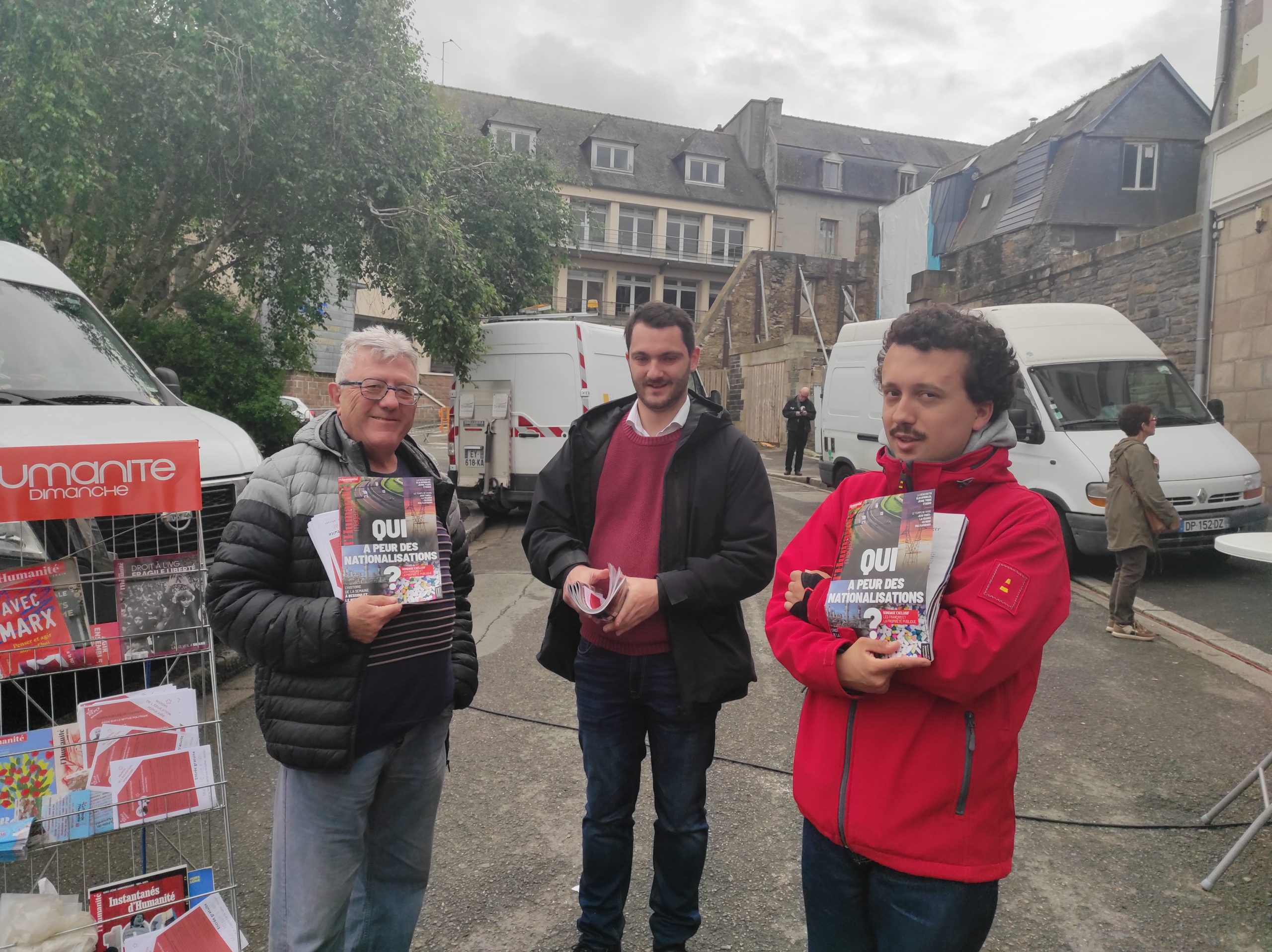 Marché de Morlaix, 7 juin – Nos camarades Daniel Ravasio, Enzo De Gregorio, Paul Mongault sur le marché de Morlaix ce matin pour vendre l’Humanité magazine et distribuer les flyers du mardi de l’éducation populaire du PCF Morlaix avec Guillaume Roubaud Quashie et Côme Simien le mardi 10 juin 2025.
